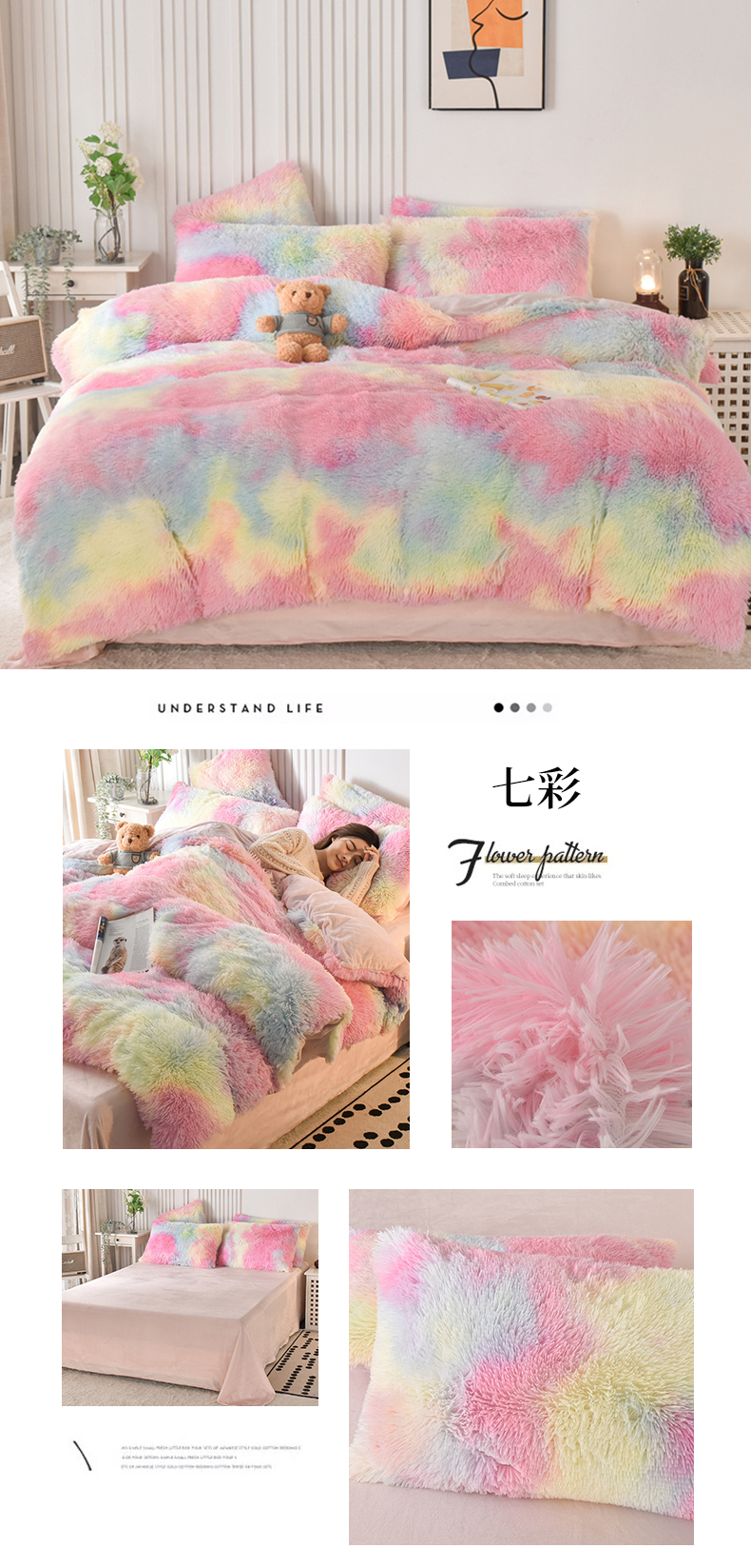 鑫喜莱 2024新款长毛绒四件套 七彩