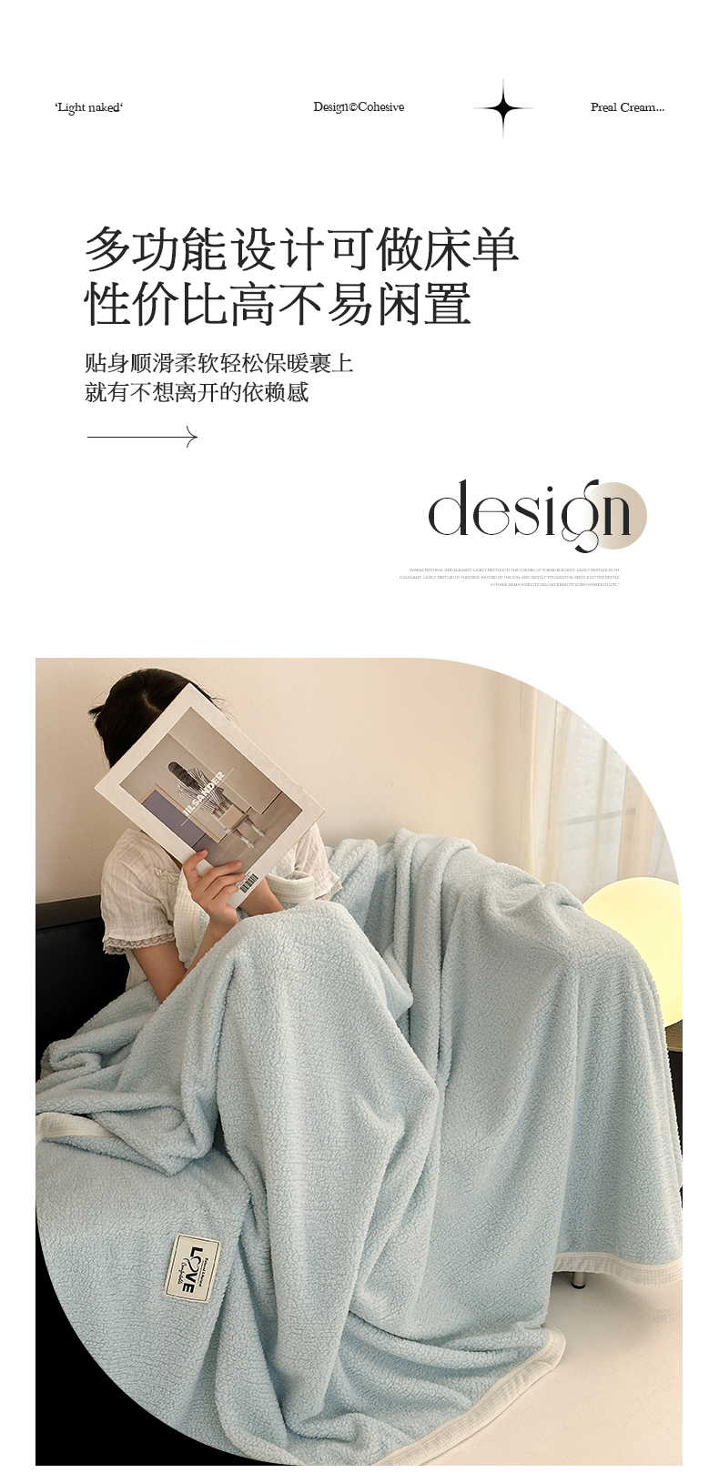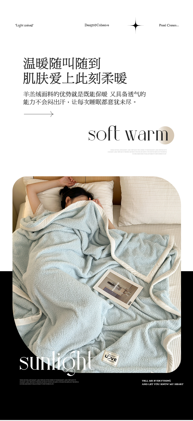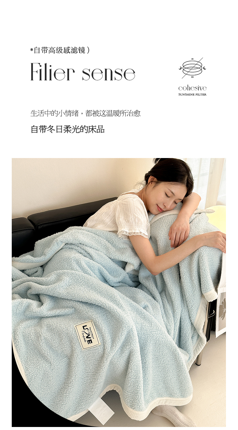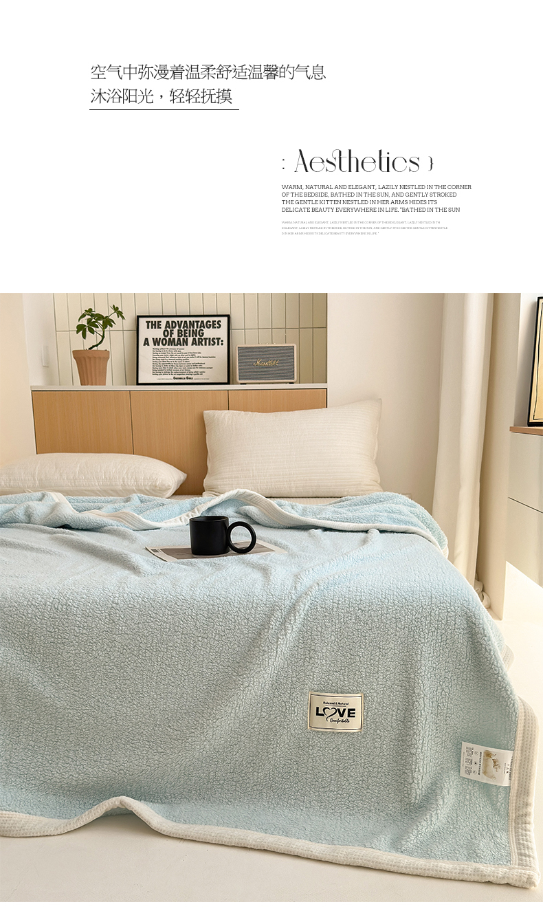 商品名称:沐棉 2024新款羊羔绒泰迪绒毛毯 湖蓝色