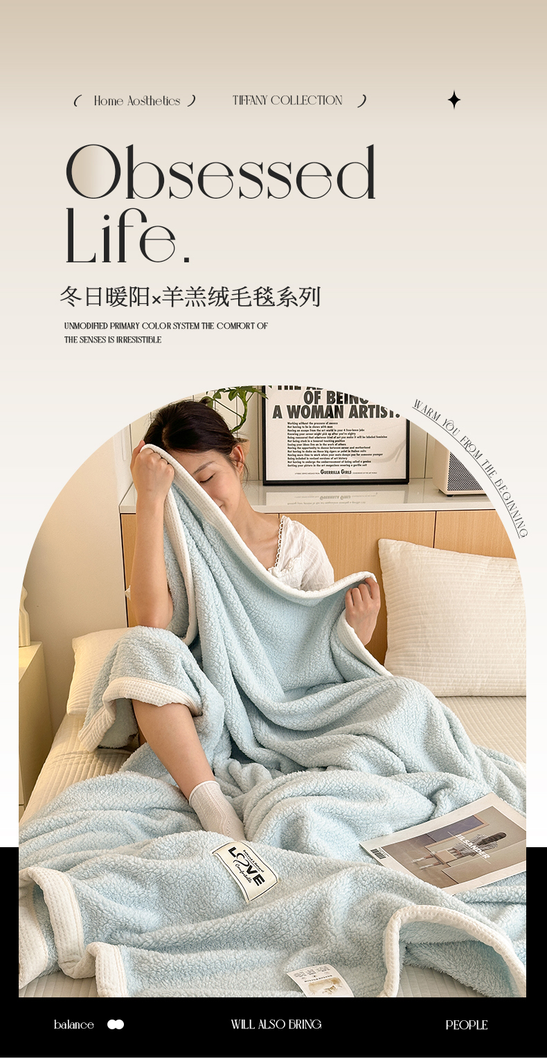 沐棉 2024新款羊羔绒泰迪绒毛毯 湖蓝色