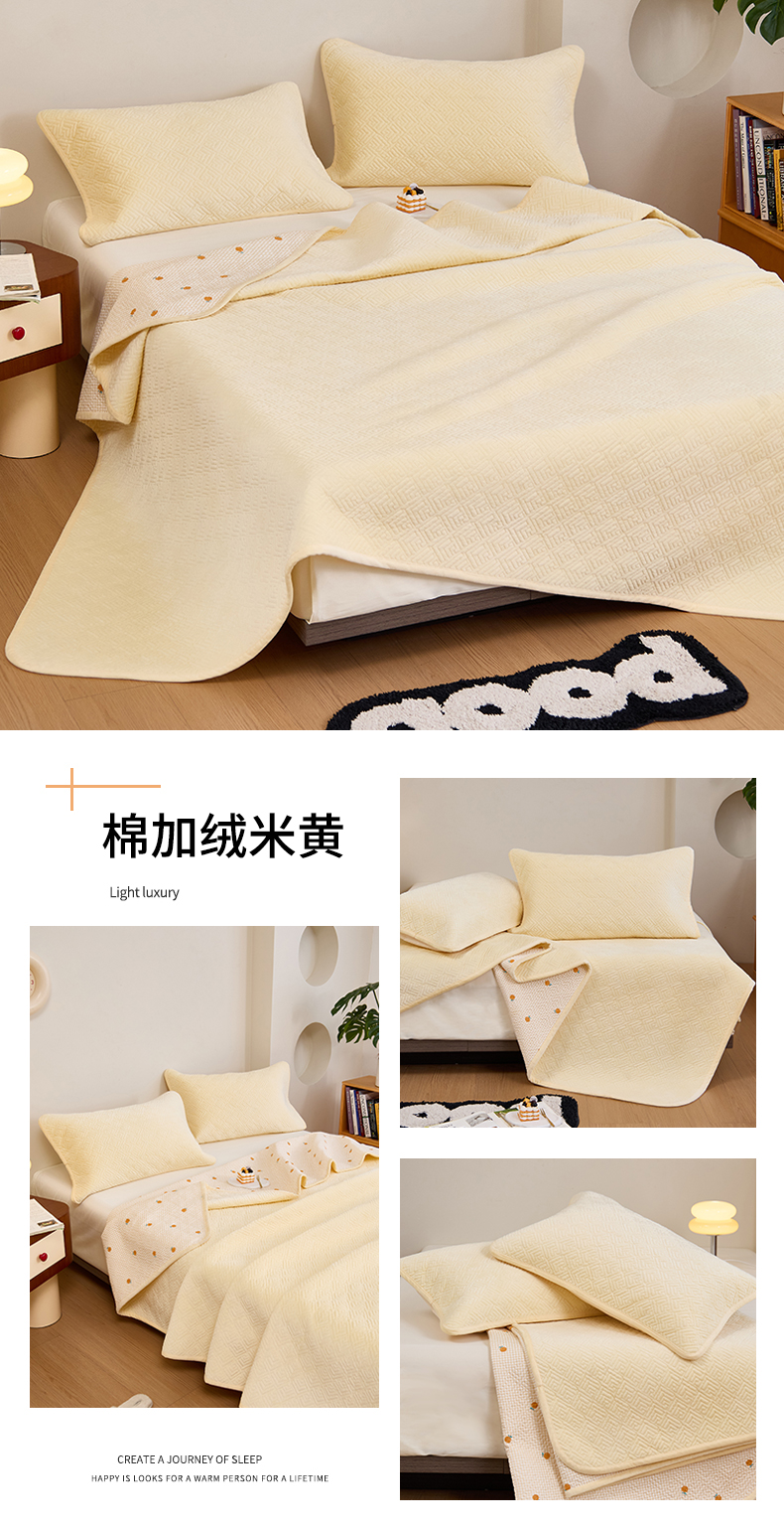 商品名称:美优兰 2025秋冬新款棉加绒床盖单品床盖三件套 棉加绒米黄