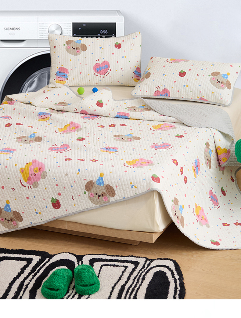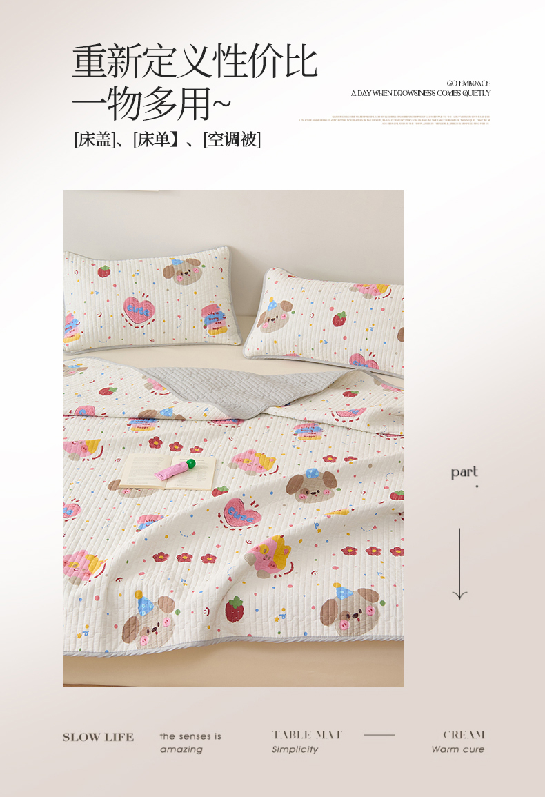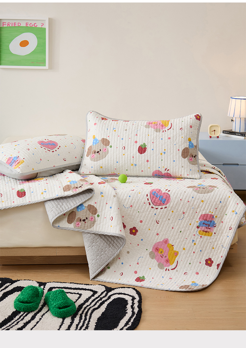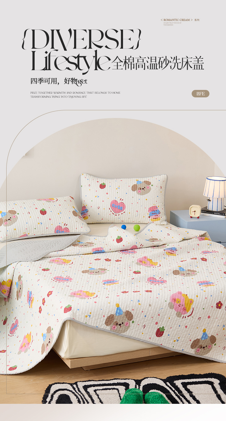 当前位置: 91家纺网 > 商品网购 > 床品套件 > 三件套 > 美优兰 2025春款全棉单面高温砂洗床盖 小猪日记