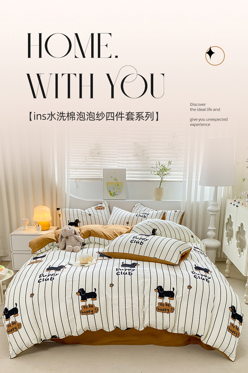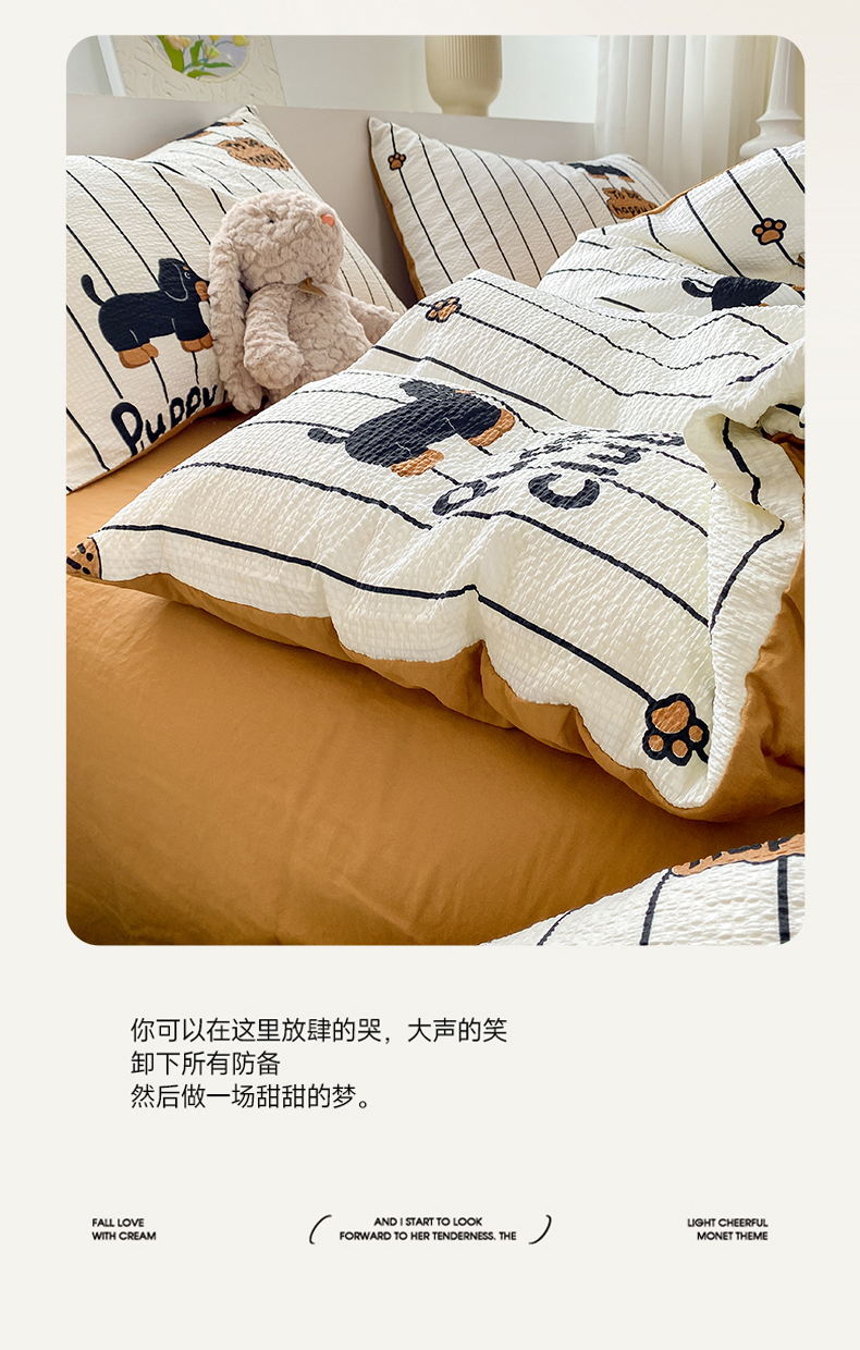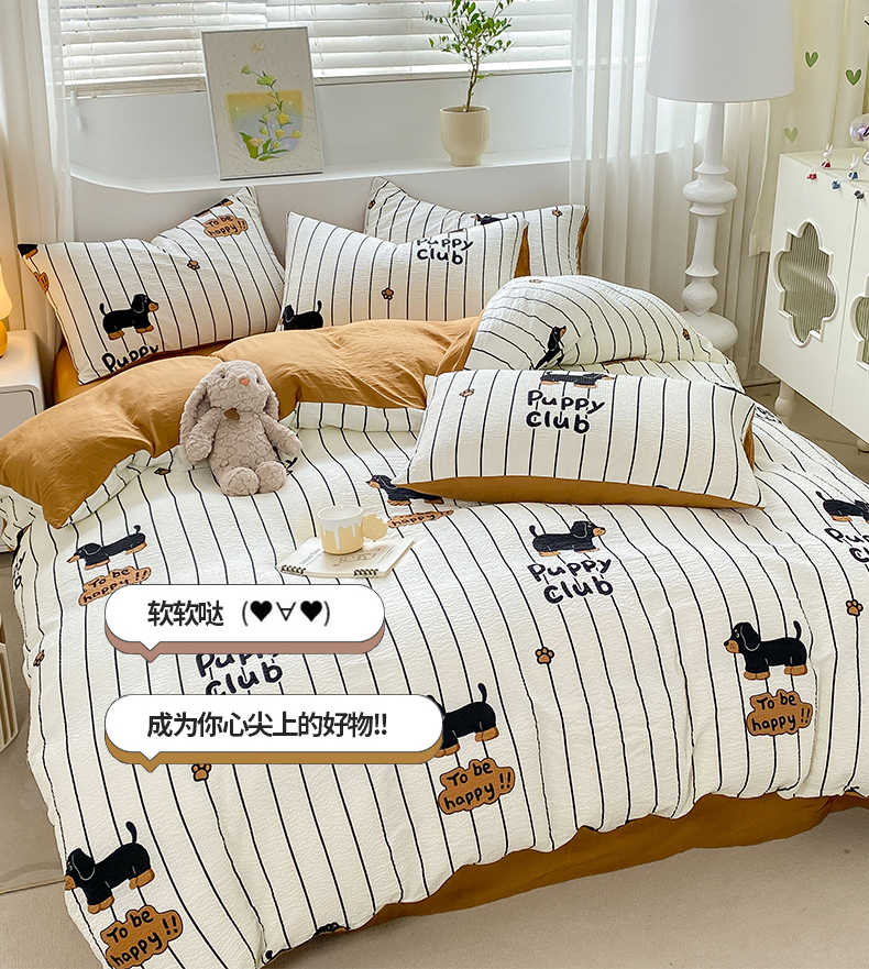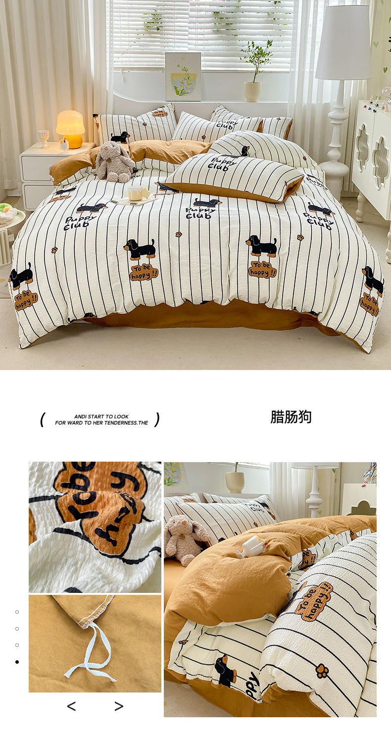 当前位置: 91家纺网 > 商品网购 > 床品套件 > 四件套 > 水洗棉四件套 > 悦织湾家纺 2025新款轻奢北欧风小清新印花水洗棉四件套 腊肠狗