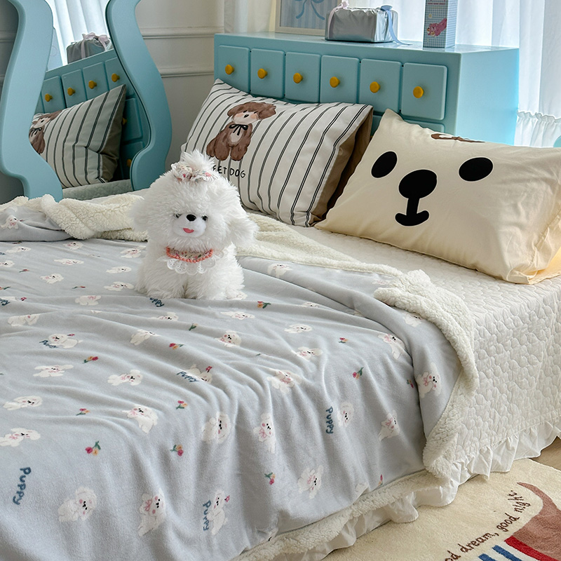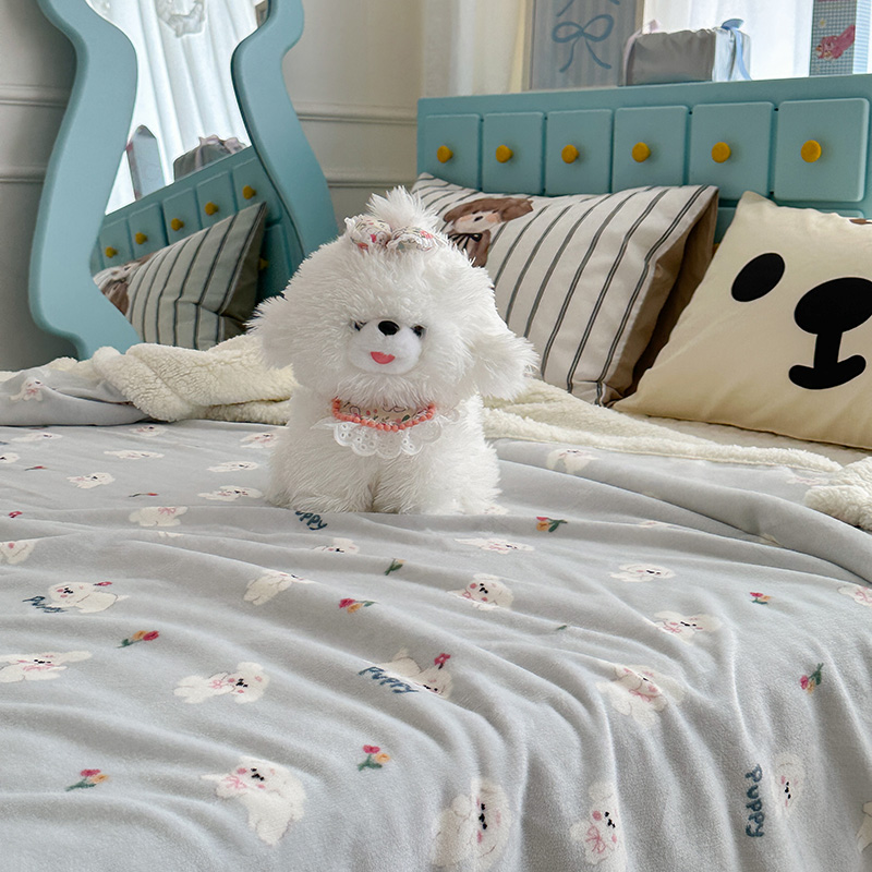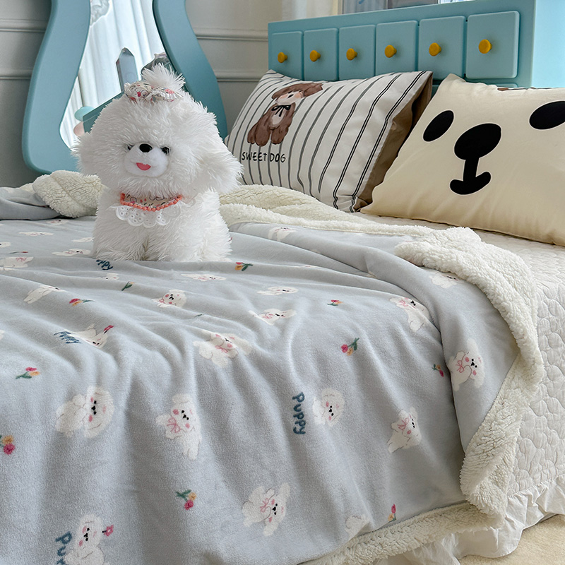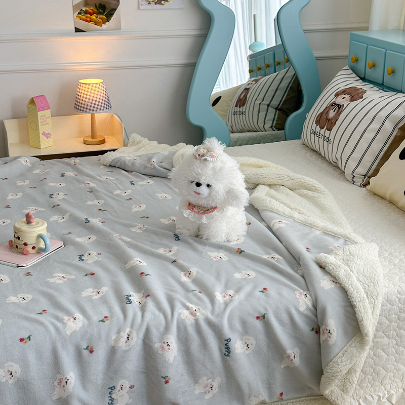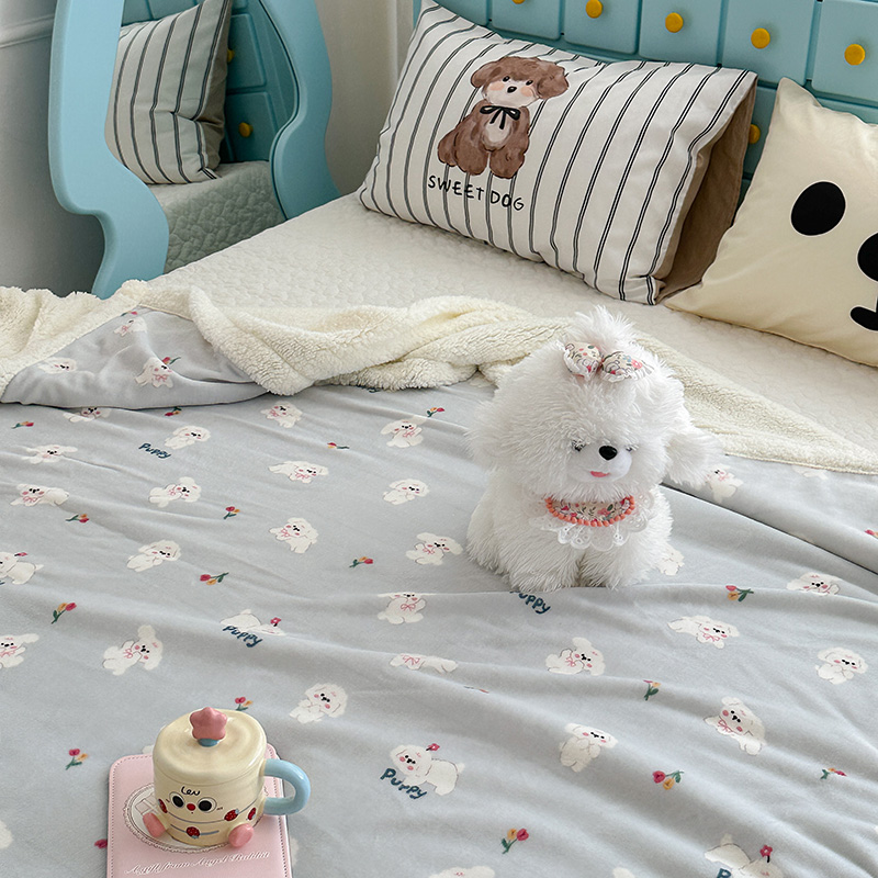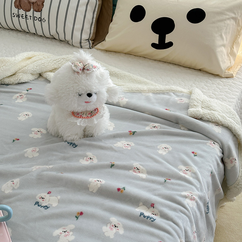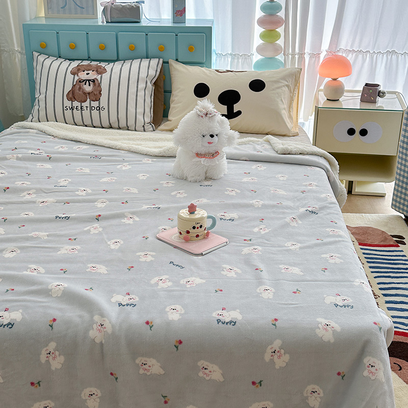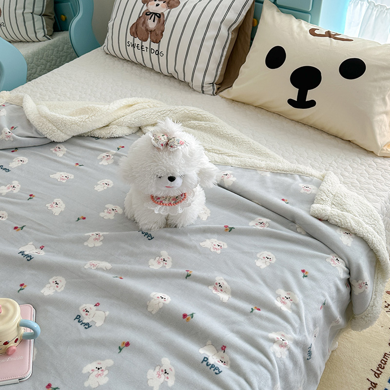 昔可家纺 2024新款羊羔绒牛奶绒毛毯系列(三)-卡通系列 蓝底小奶狗