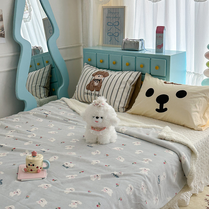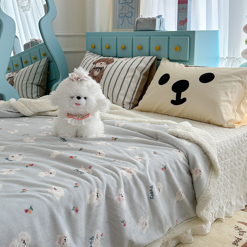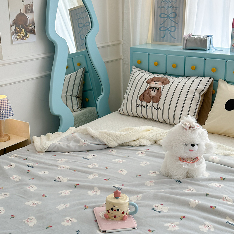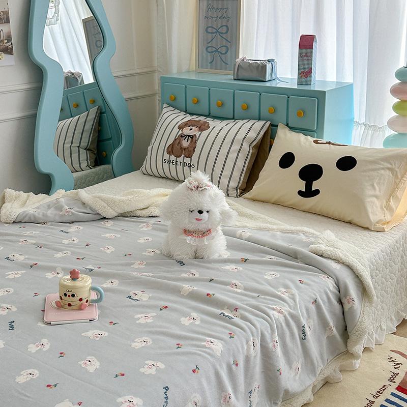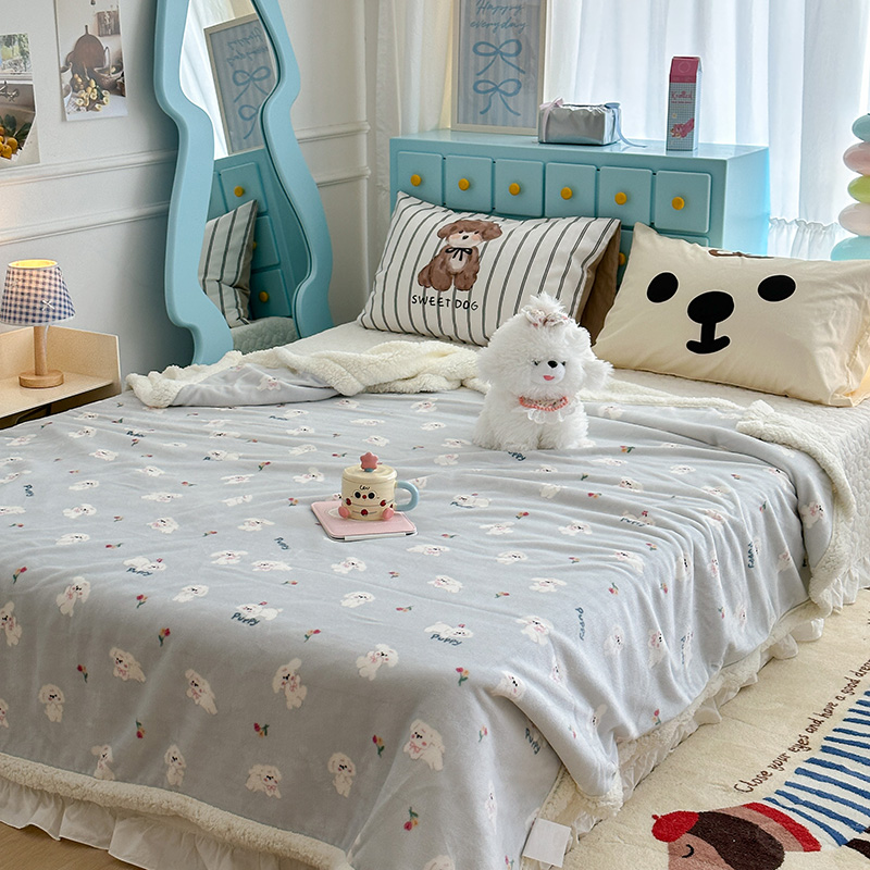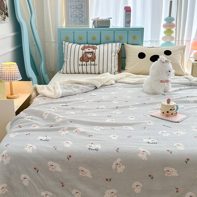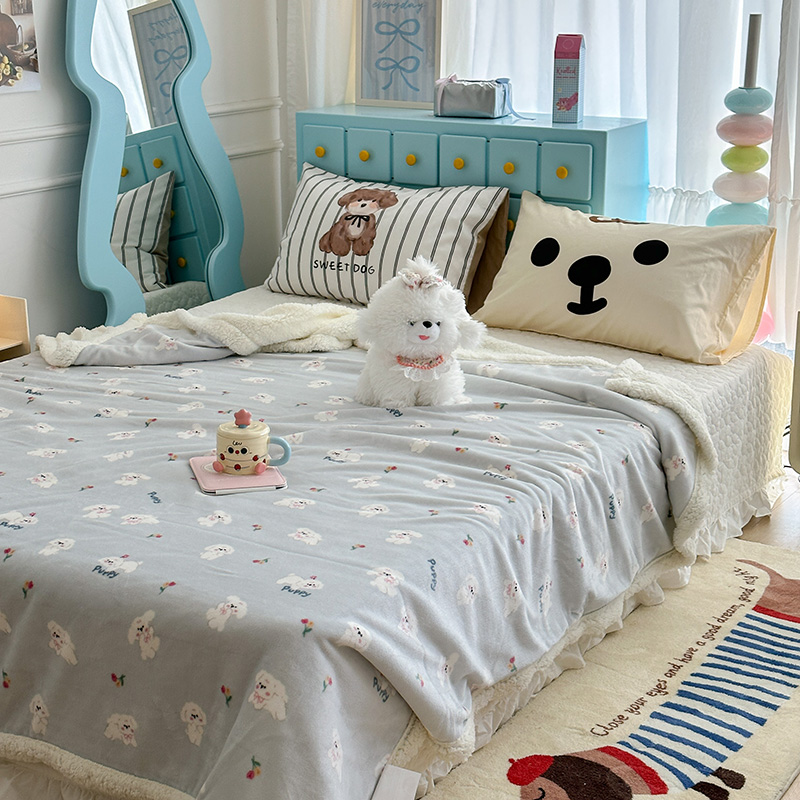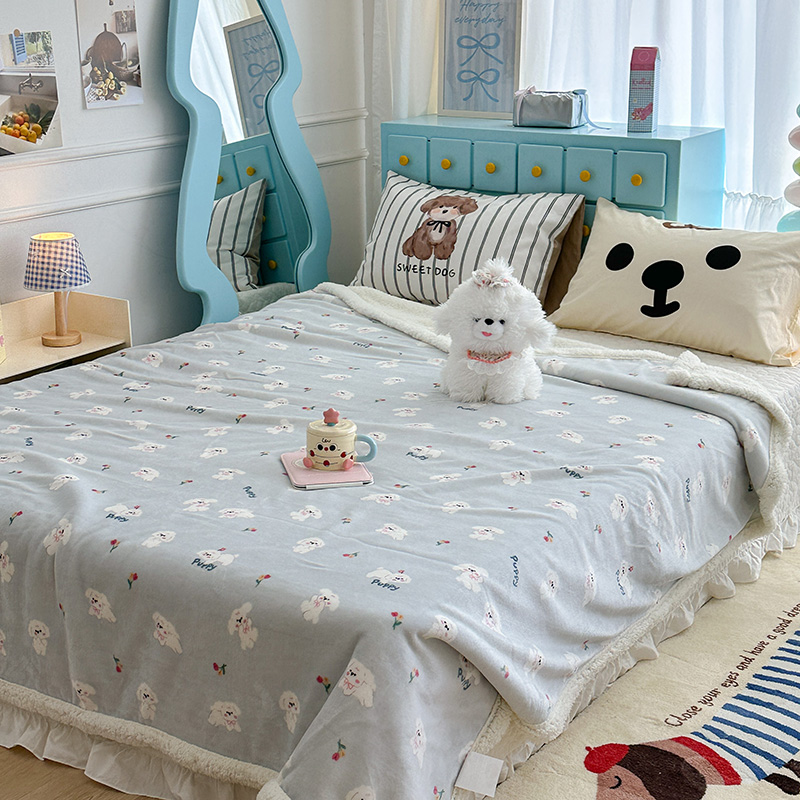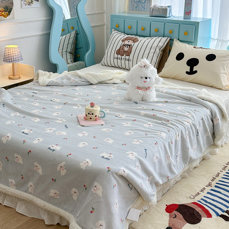 昔可家纺 2024新款羊羔绒牛奶绒毛毯系列(三)-卡通系列 蓝底小奶狗