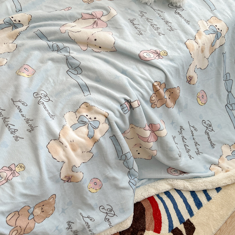 昔可家纺 2024新款羊羔绒牛奶绒毛毯系列(三)-卡通系列 小熊礼物