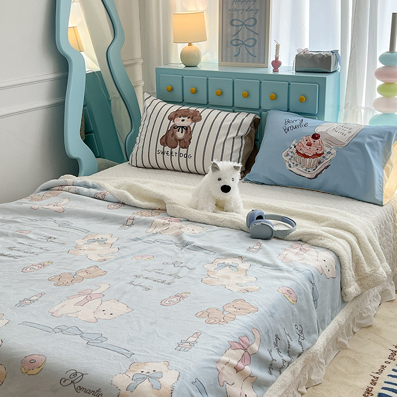(总)昔可家纺 2024新款印花牛奶绒四件套系列-洛丽塔风,萝莉小兔,小熊烘焙屋,小熊玩偶屋