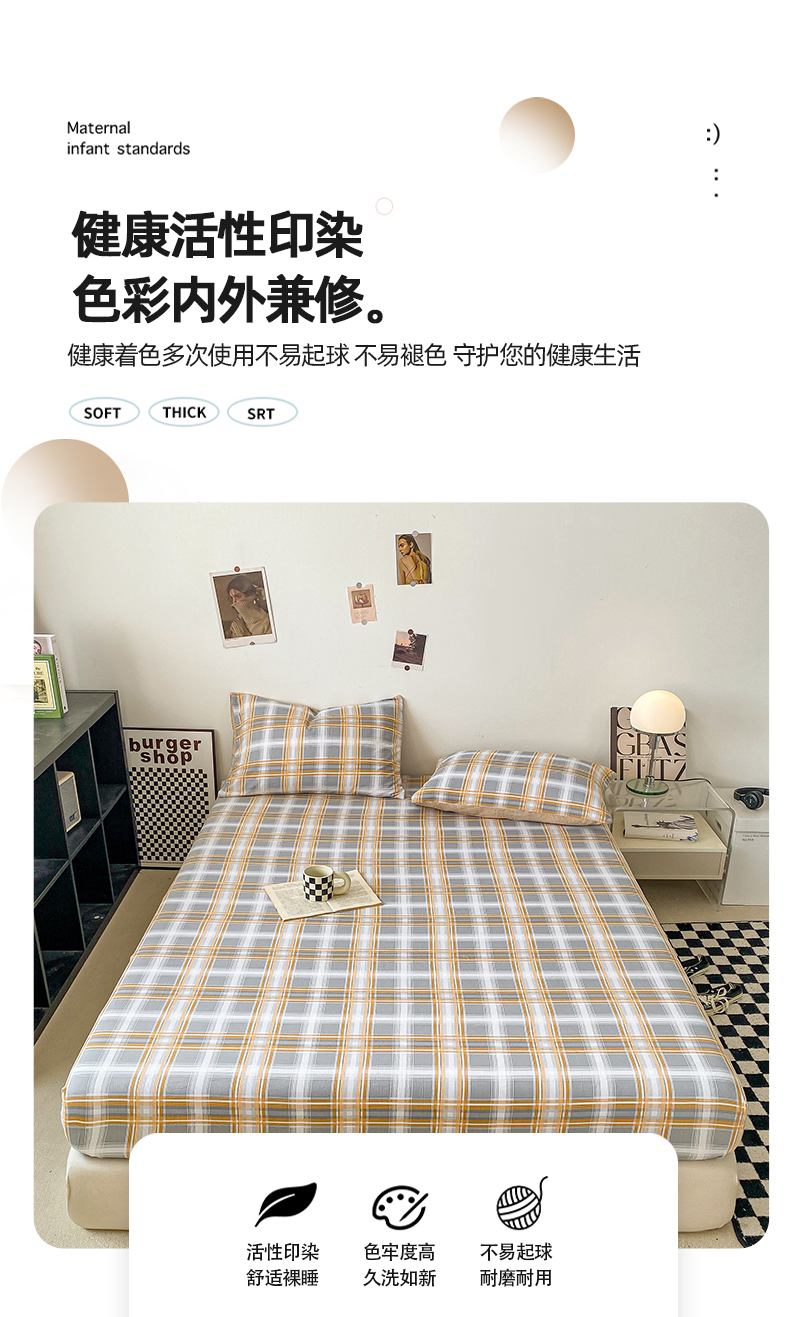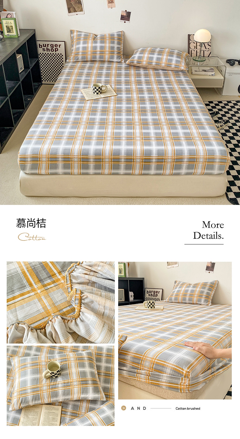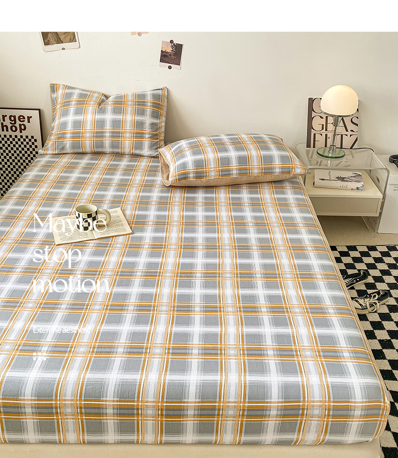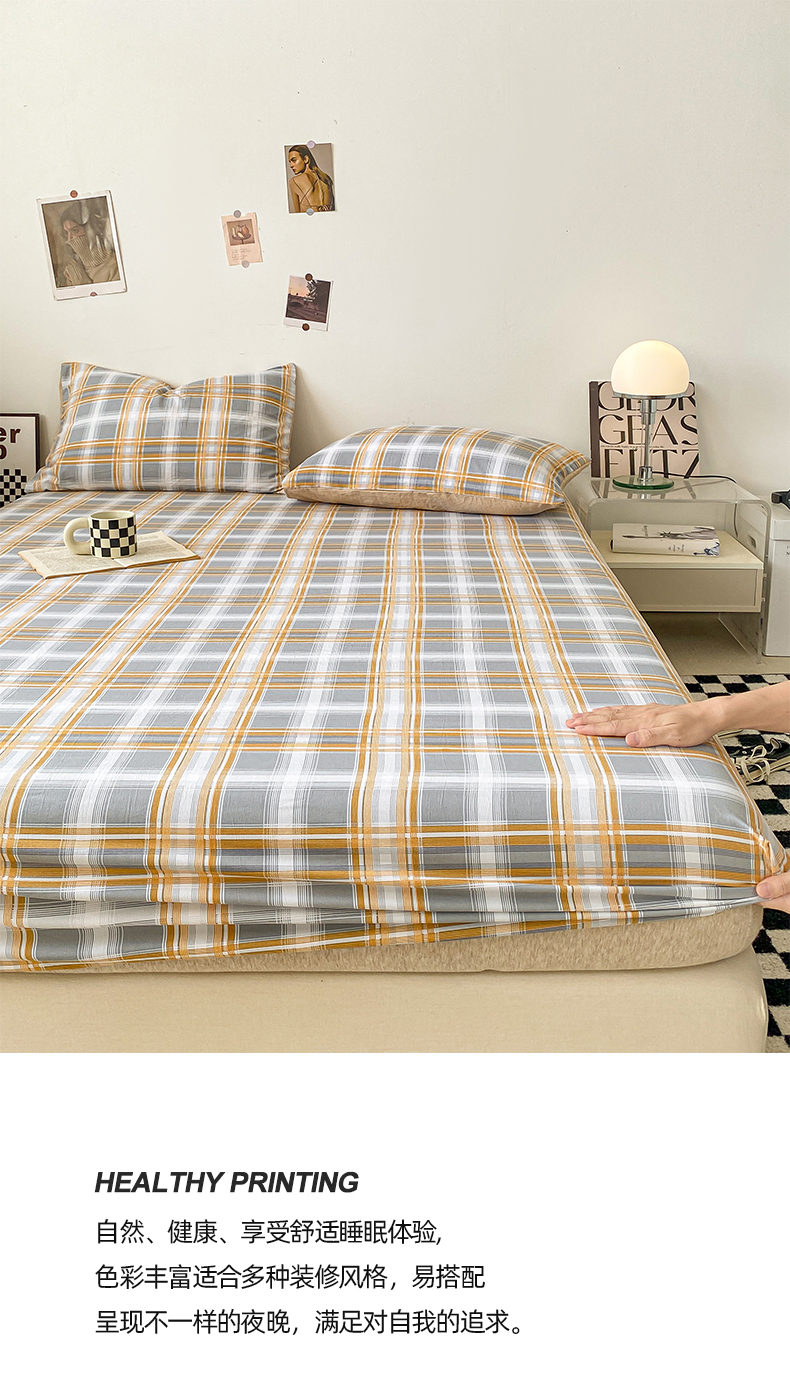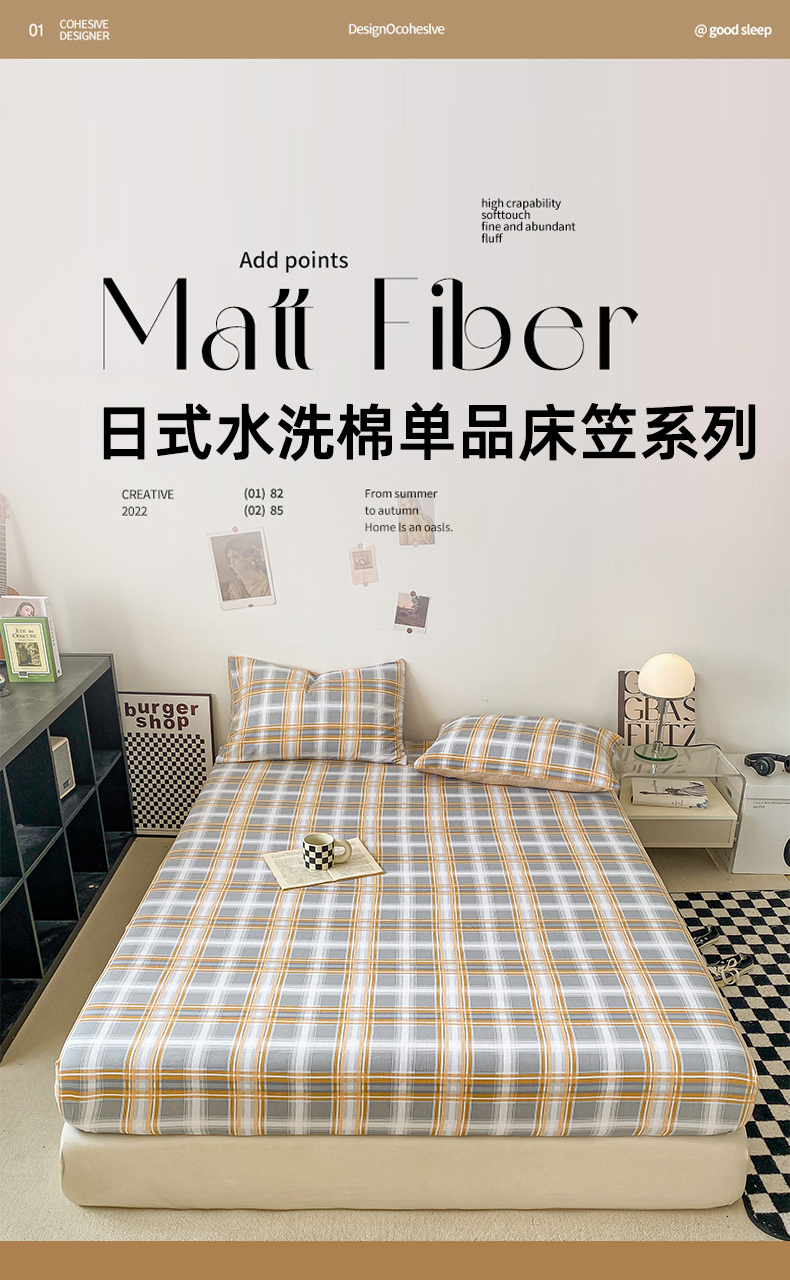商品名称:悦织湾家纺 2025新款日式简约格子水洗棉单品床笠系列 慕尚桔