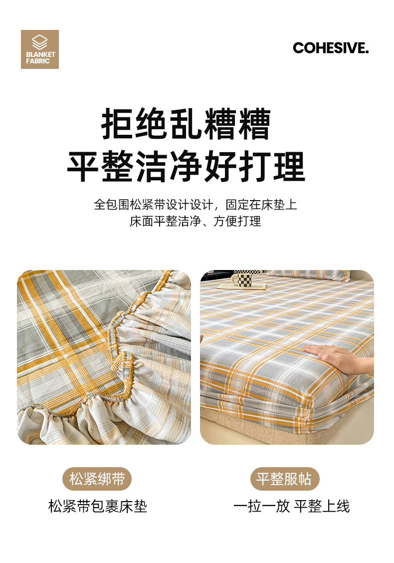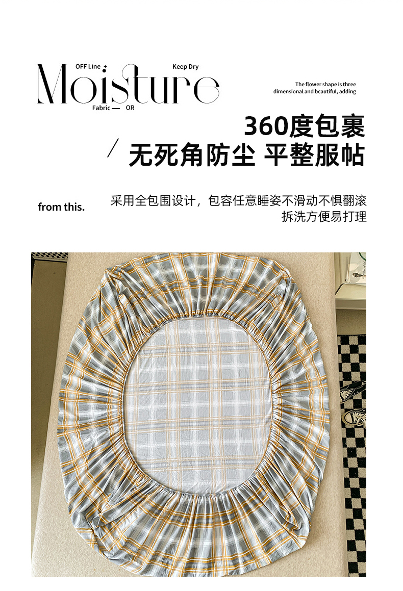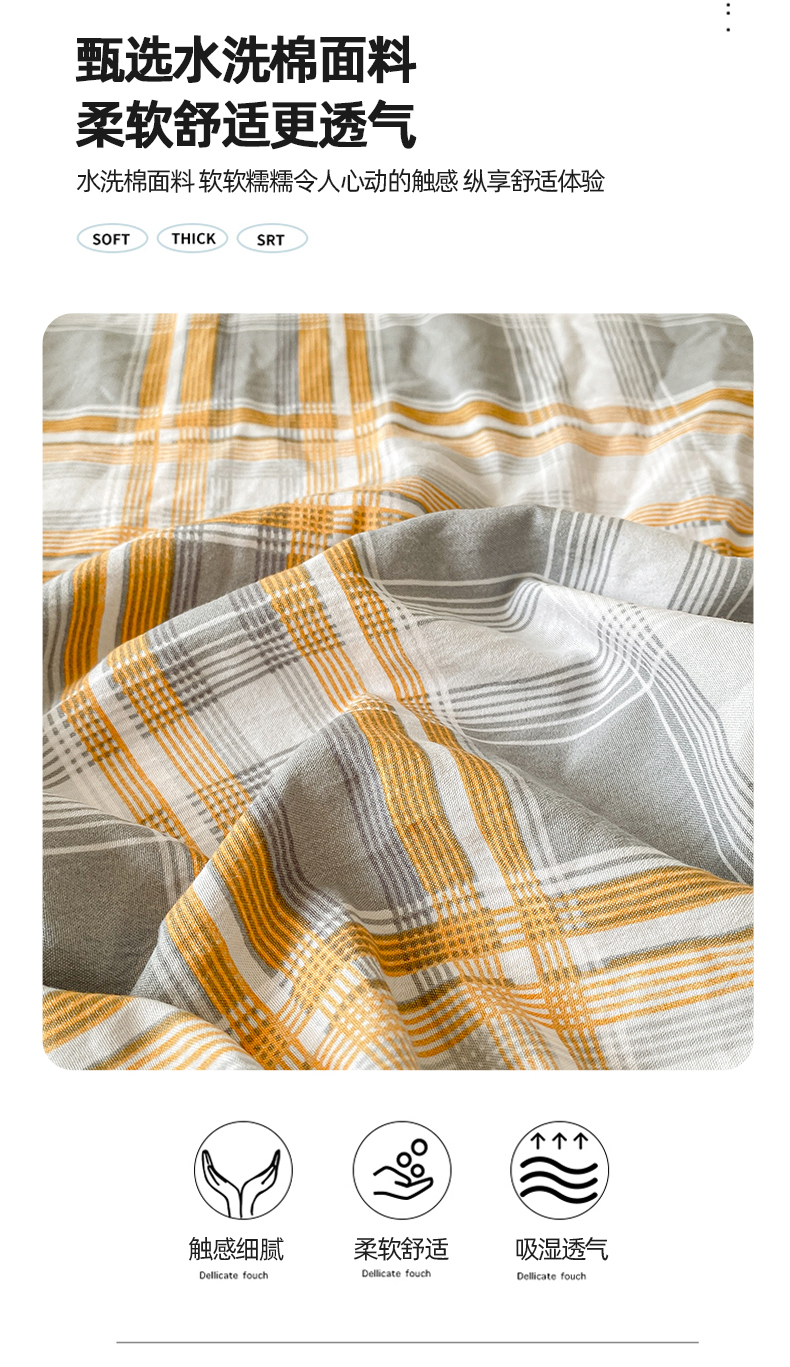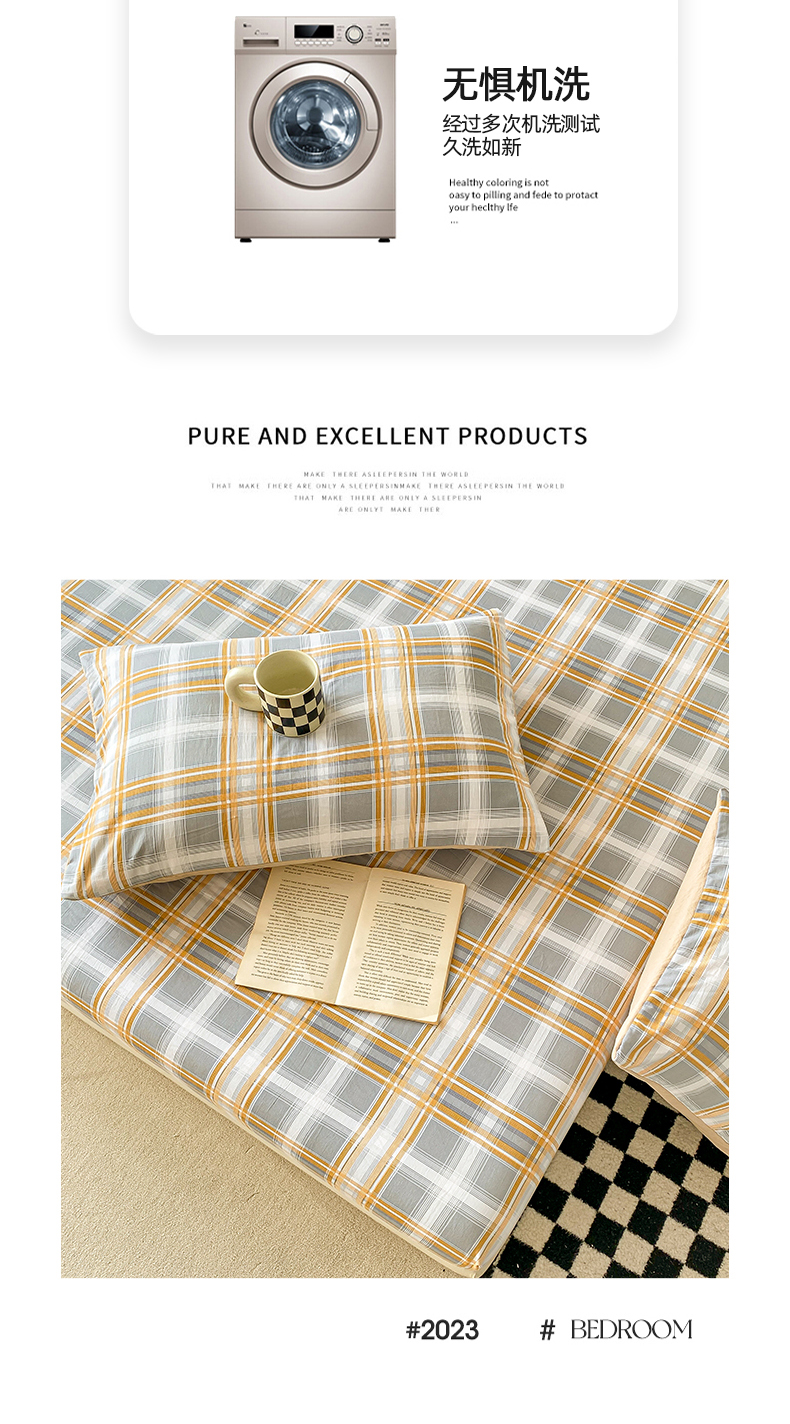 商品名称:悦织湾家纺 2025新款日式简约格子水洗棉单品床笠系列 慕尚桔