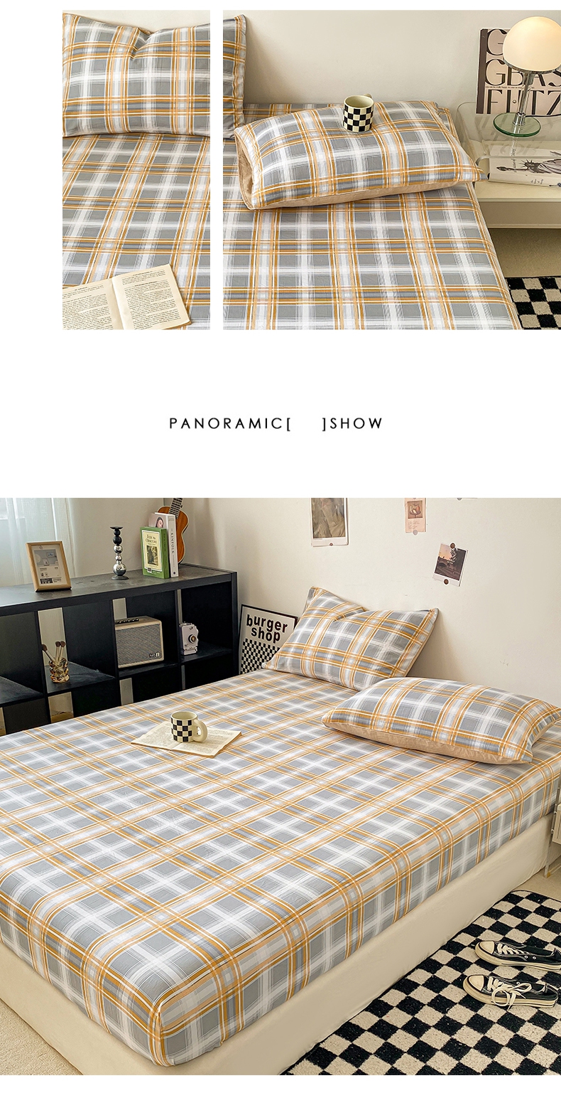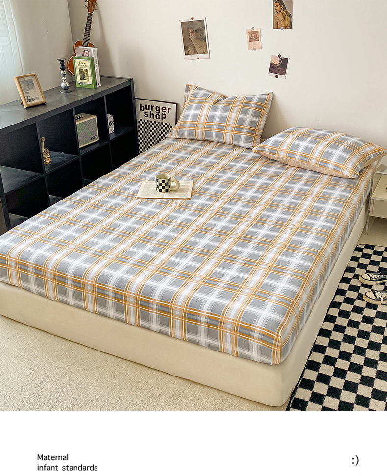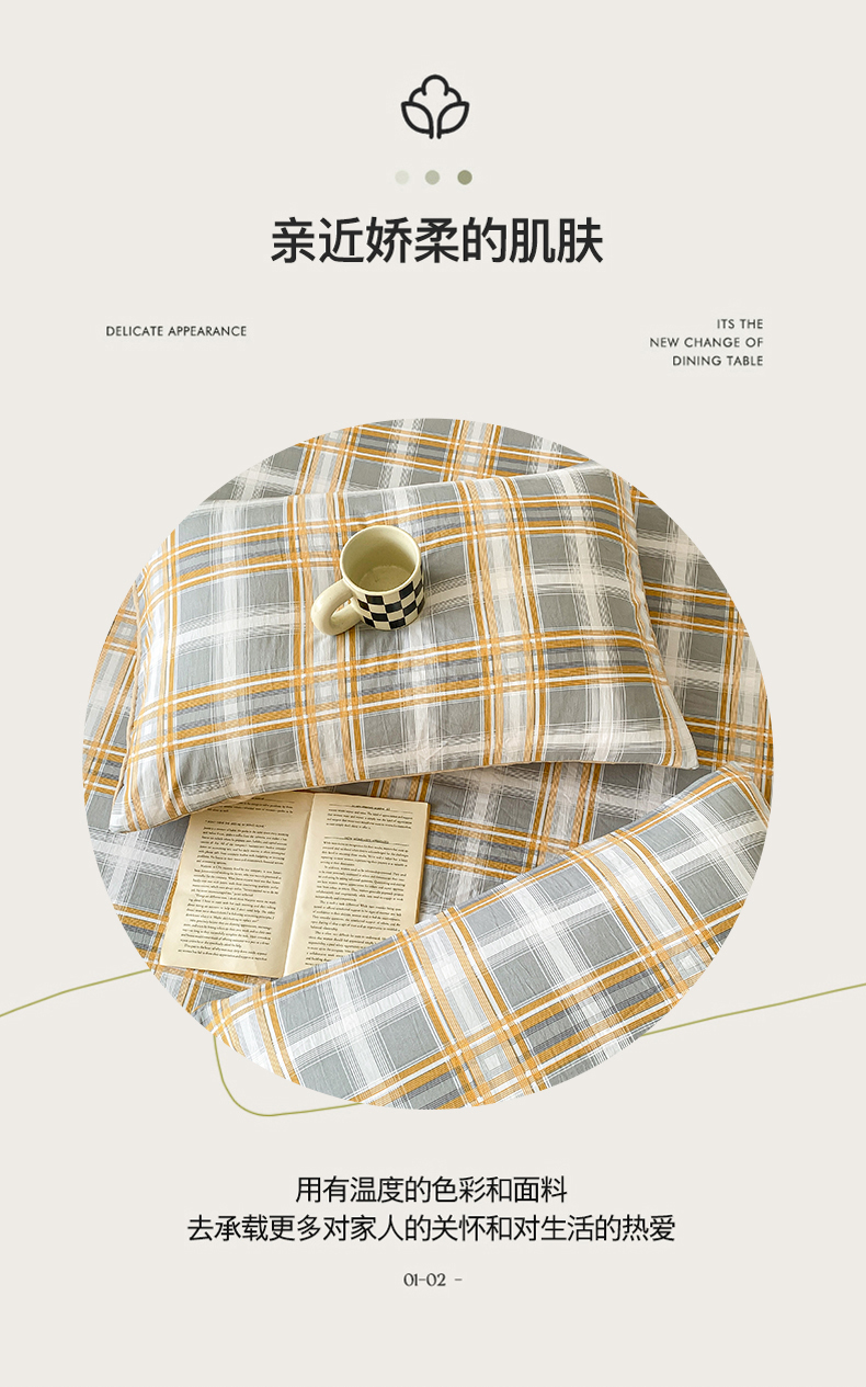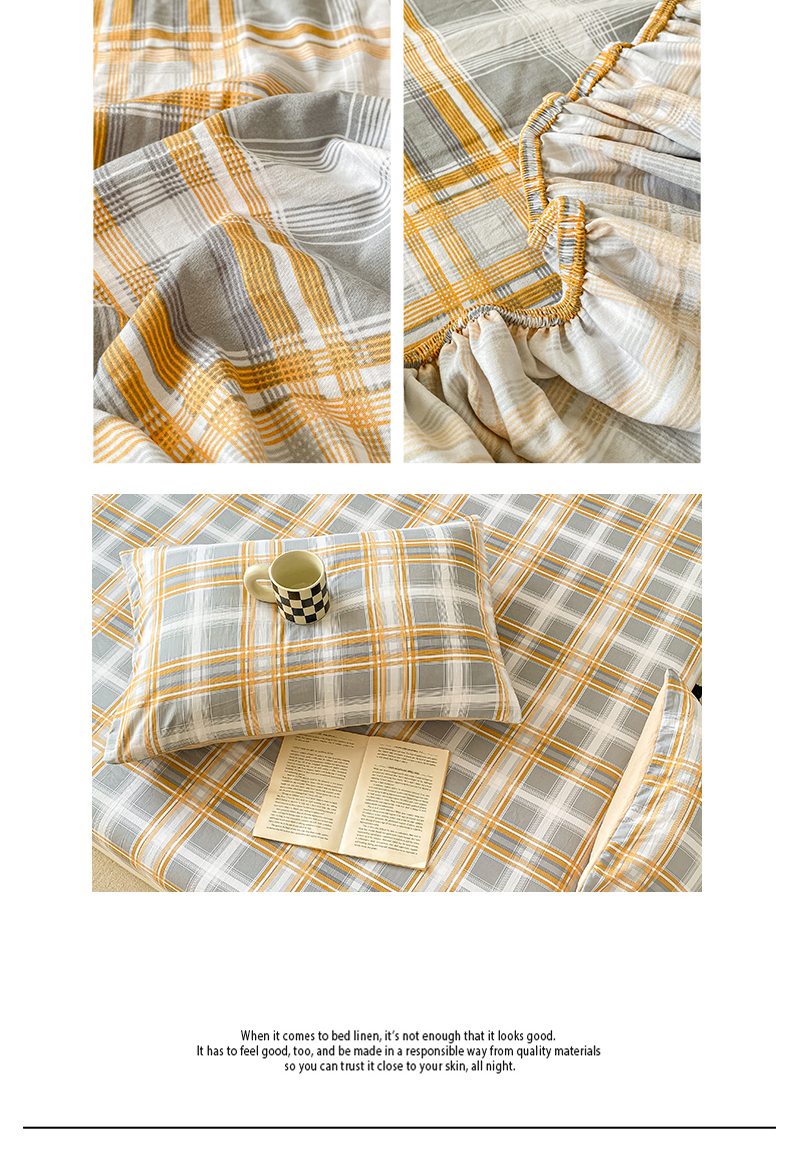 悦织湾家纺 2025新款日式简约格子水洗棉单品床笠系列 慕尚桔