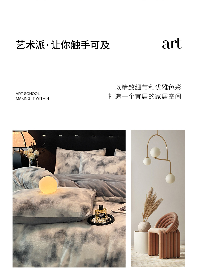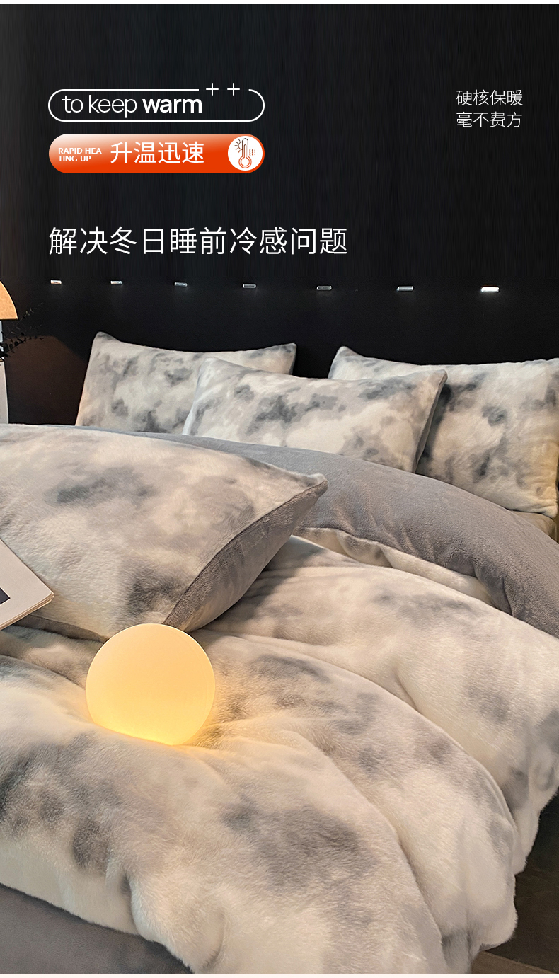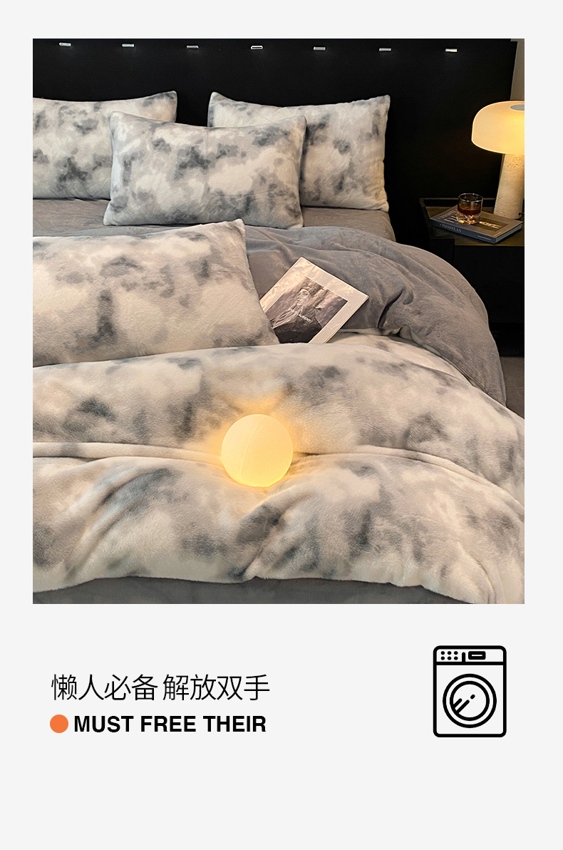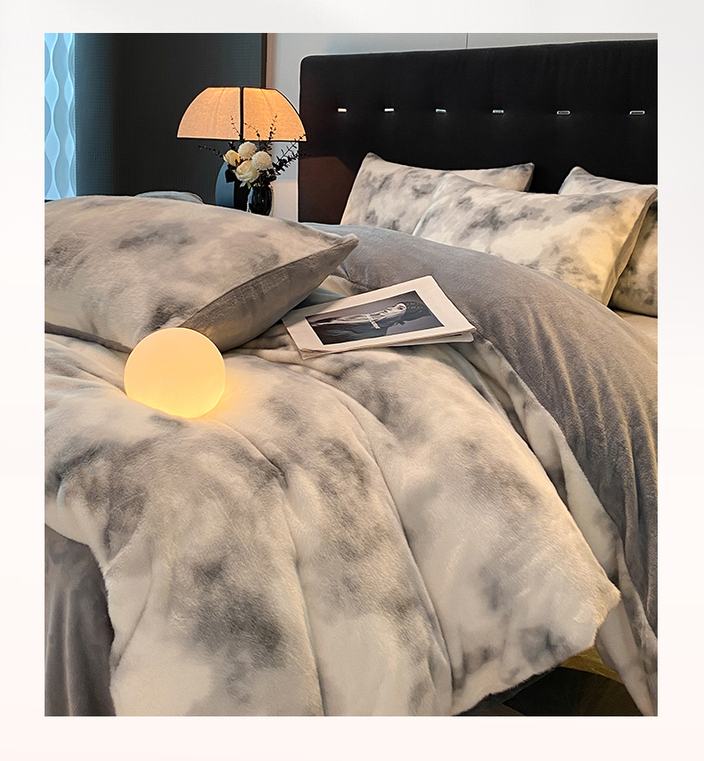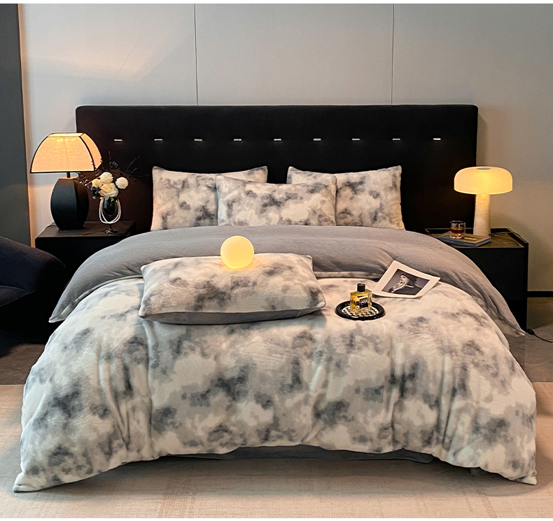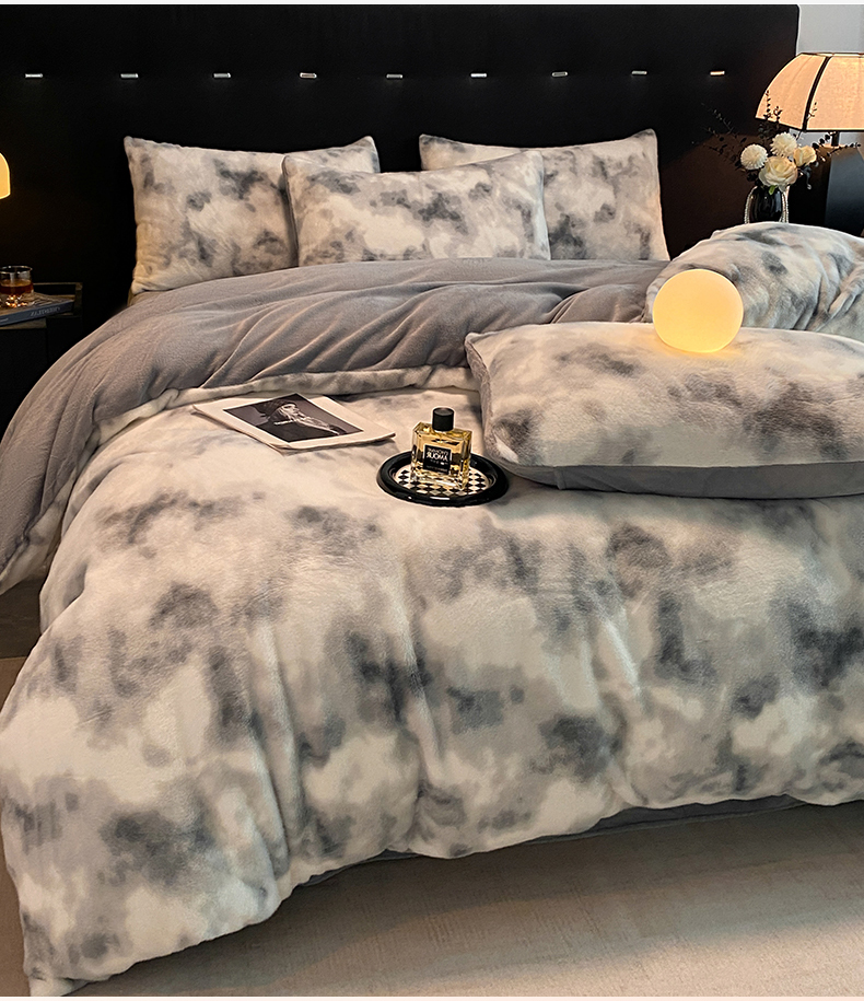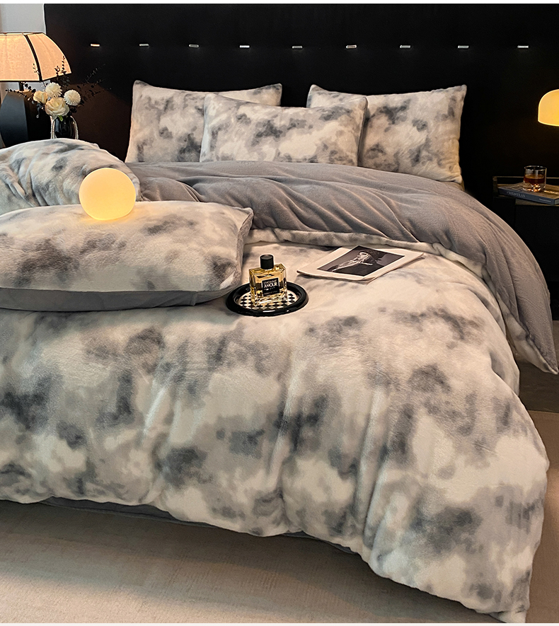 商品名称:嗯呢家纺 2024新款A类高克重全消光雪貂绒扎染风四件套-七彩 七彩-灰