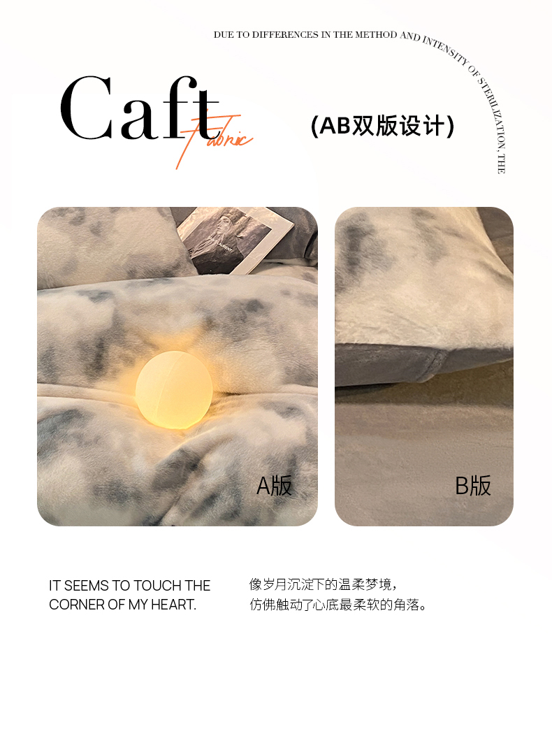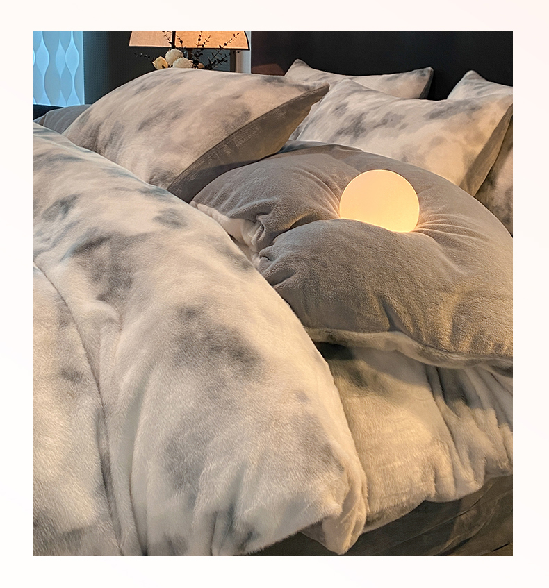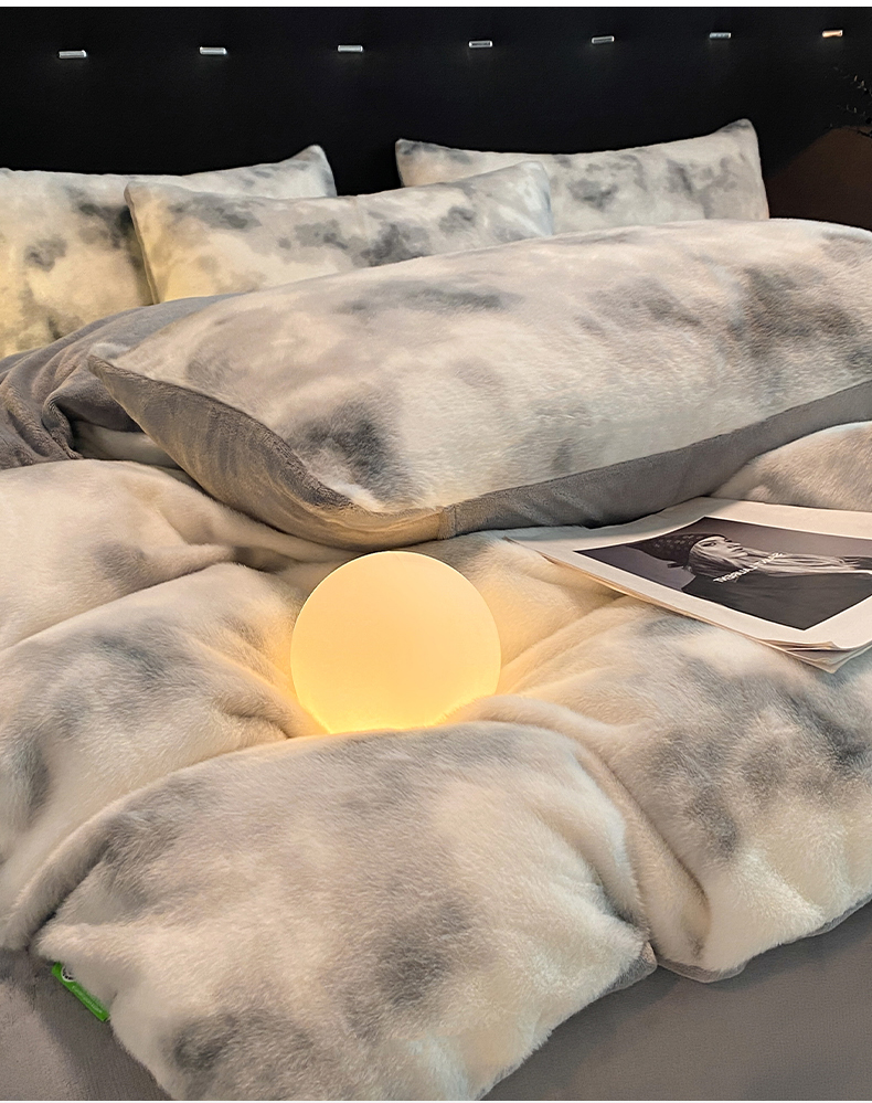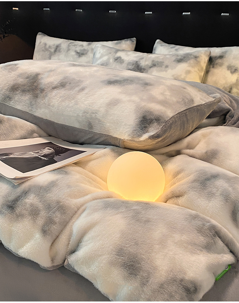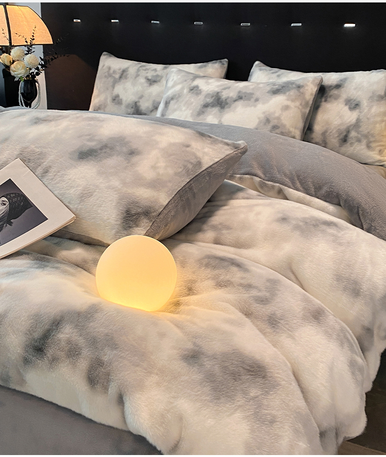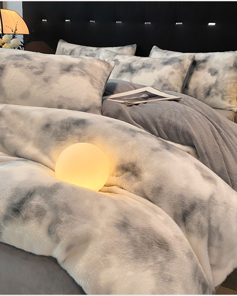 嗯呢家纺 2024新款A类高克重全消光雪貂绒扎染风四件套-七彩 七彩-灰
