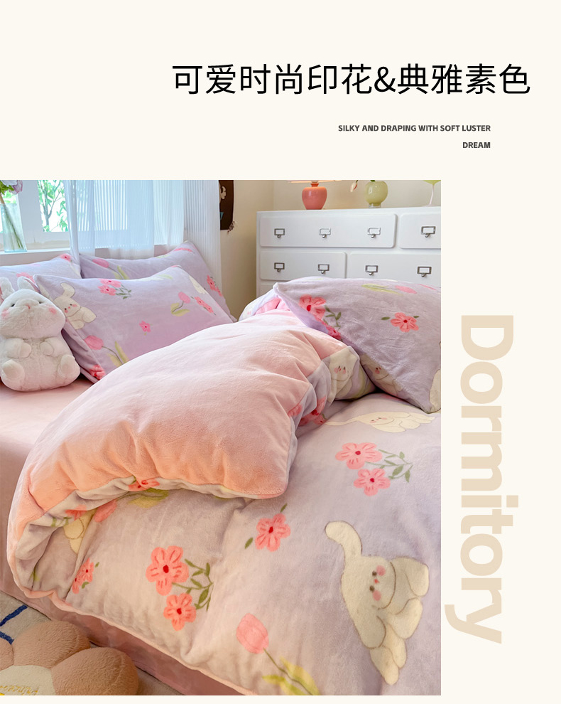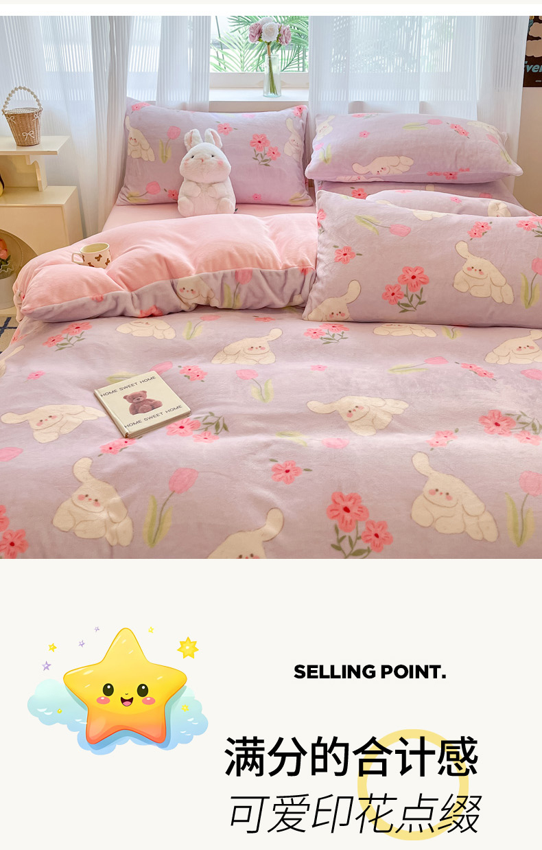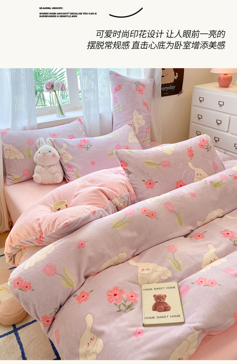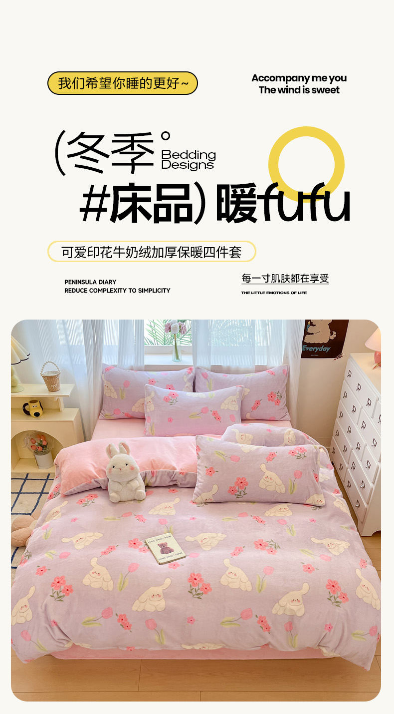 当前位置: 91家纺网 > 商品网购 > 床品套件 > 四件套 > 牛奶绒四件套 > 慕澄家纺 2024新款小清新可爱印花牛奶绒加厚保暖四件套 花丛嬉戏