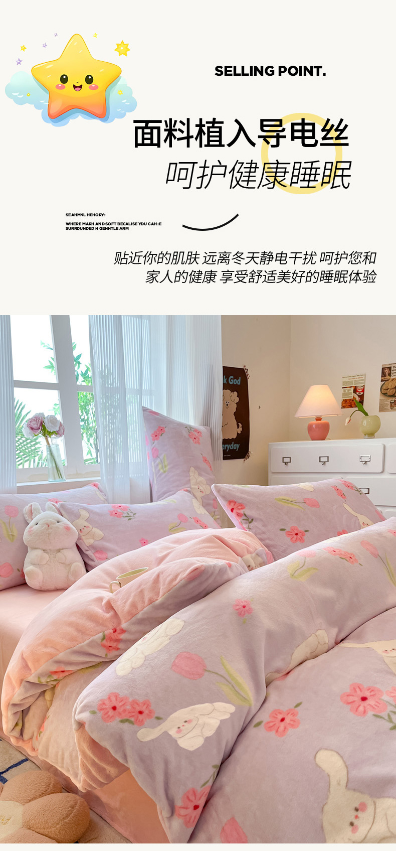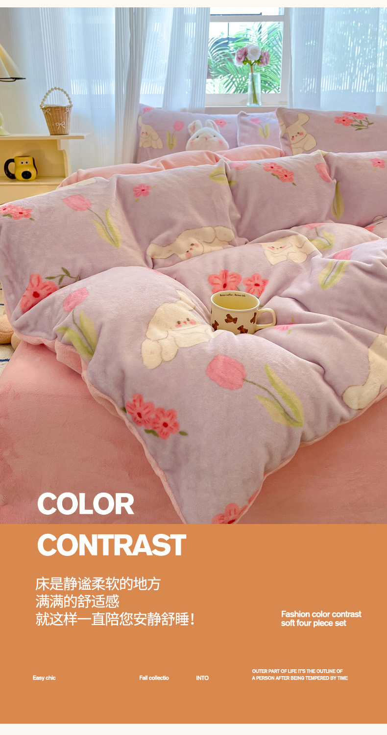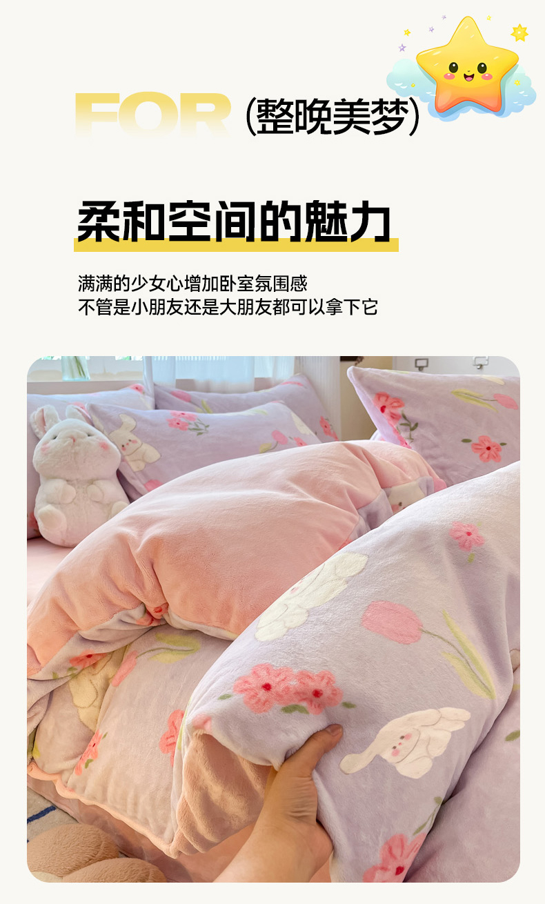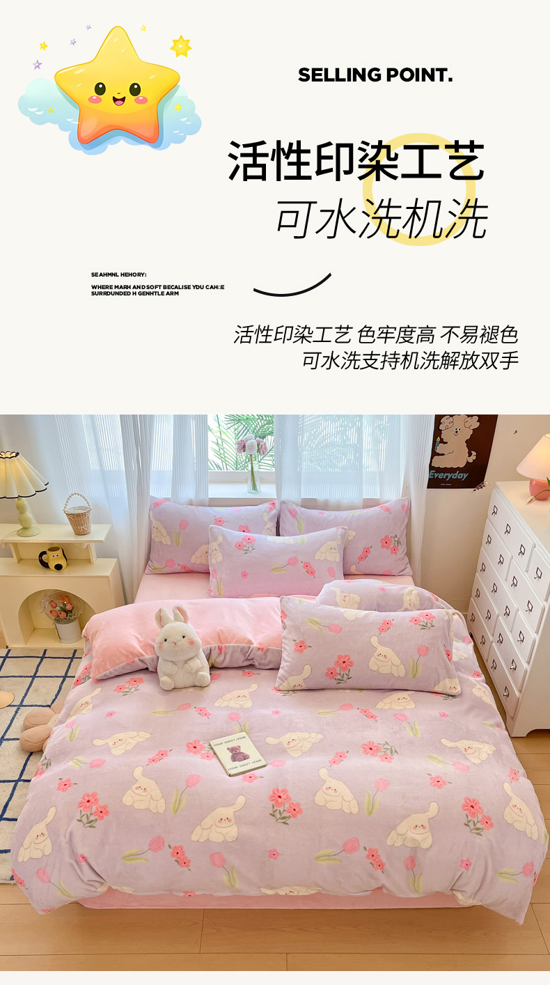 当前位置: 91家纺网 > 商品网购 > 床品套件 > 四件套 > 牛奶绒四件套 > 慕澄家纺 2024新款小清新可爱印花牛奶绒加厚保暖四件套 花丛嬉戏