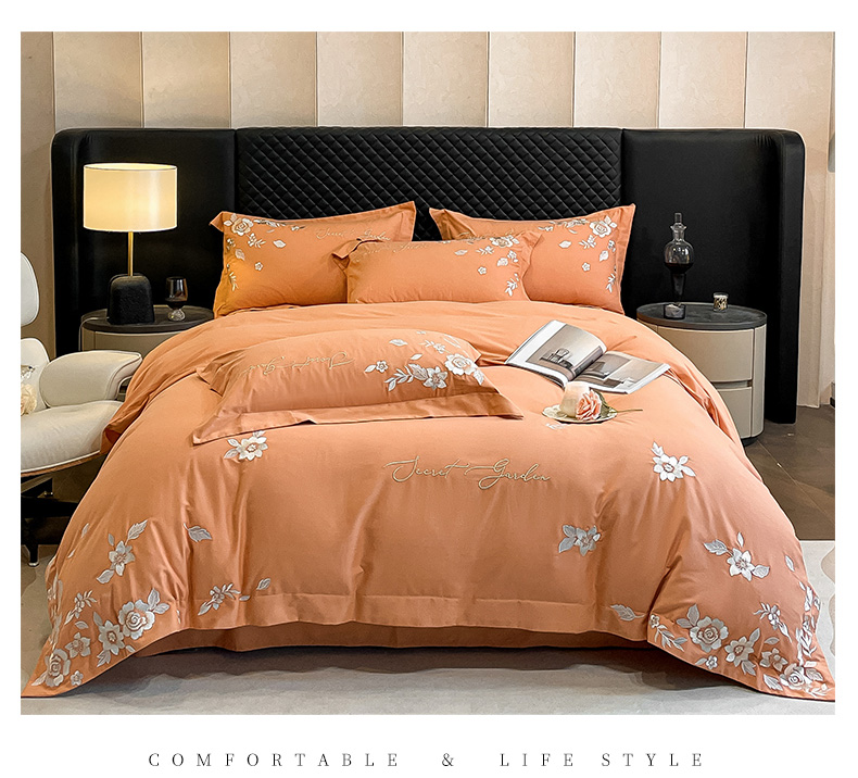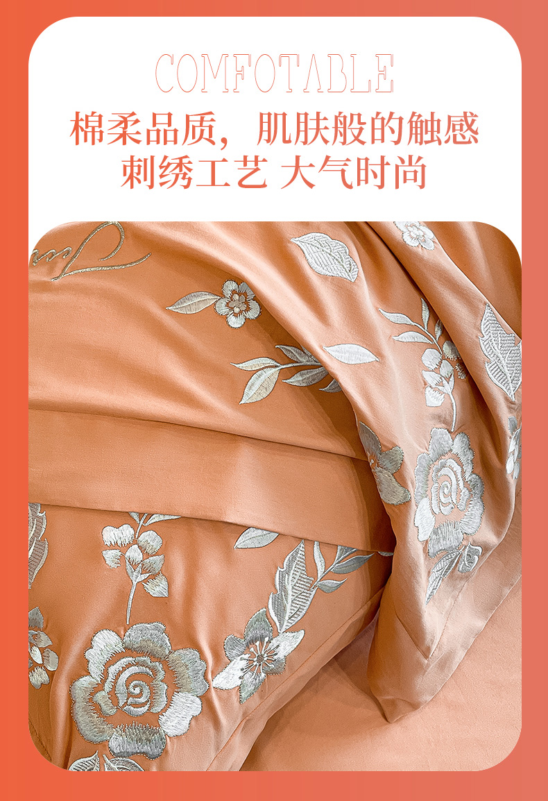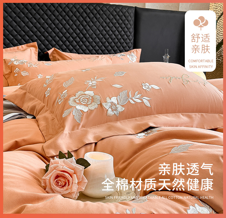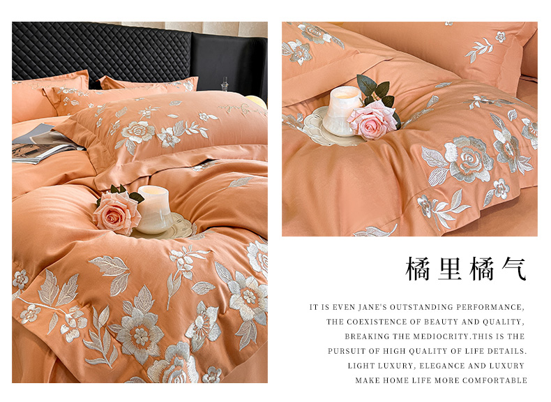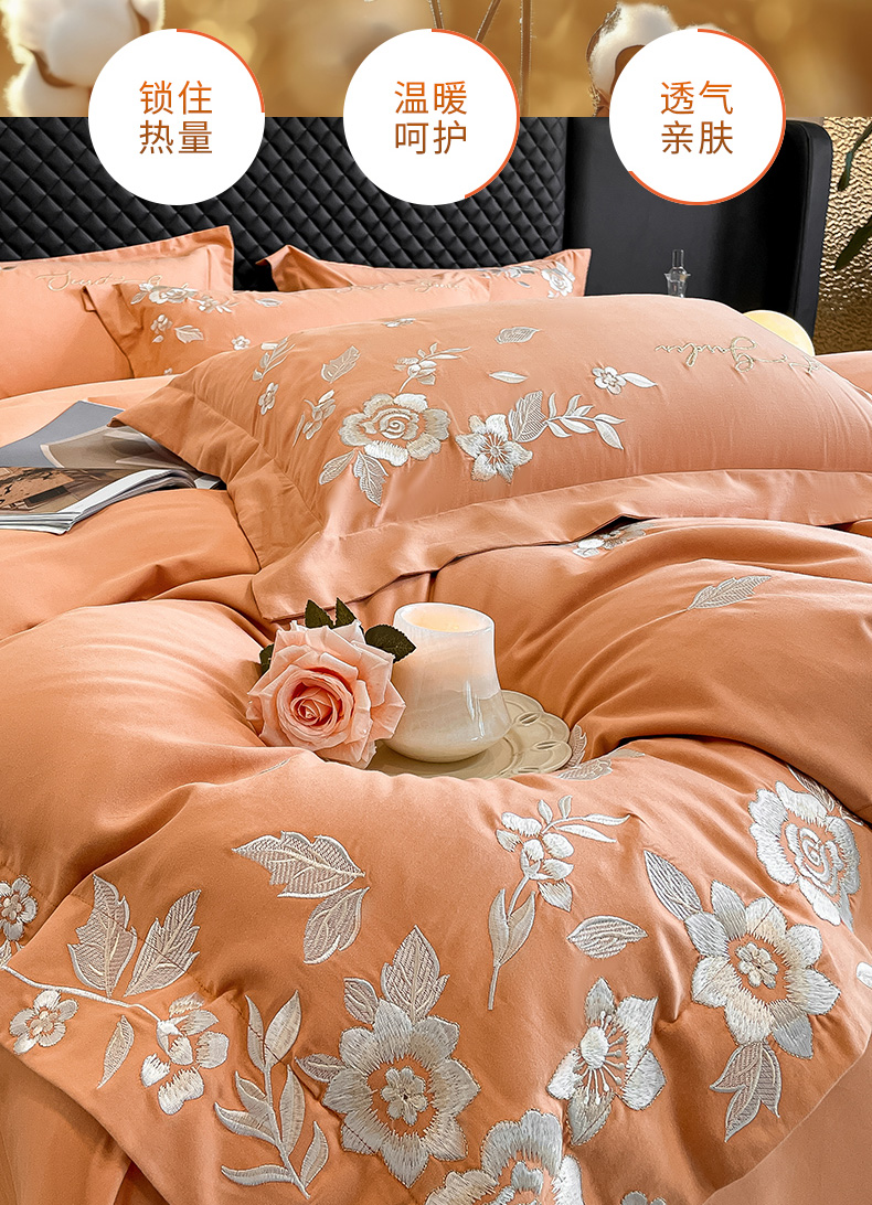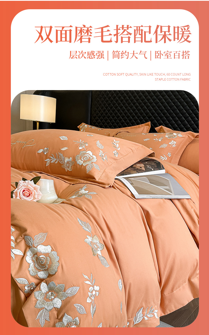 商品名称:爱缦 2024新款全棉加厚磨毛四件套-美琳 橘里橘气