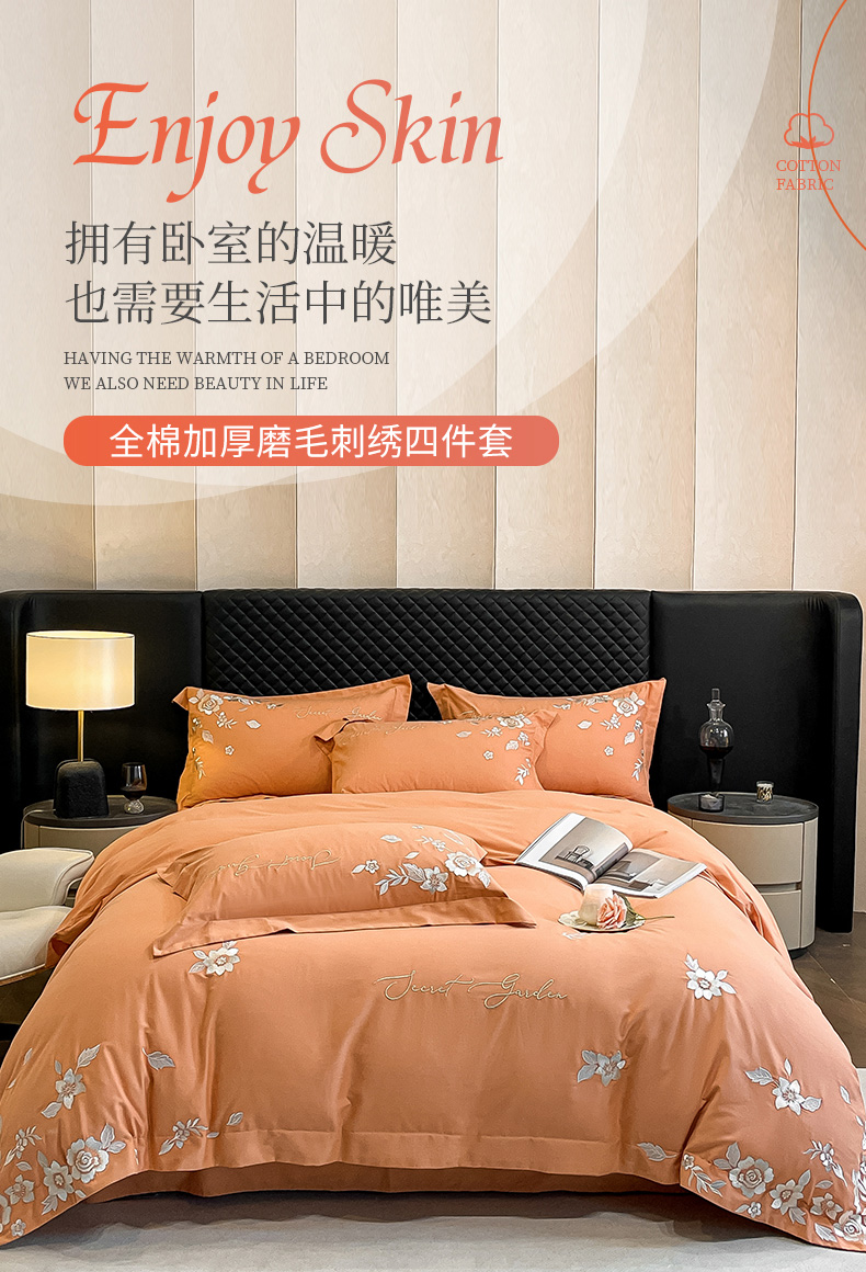 爱缦 2024新款全棉加厚磨毛四件套-美琳 橘里橘气