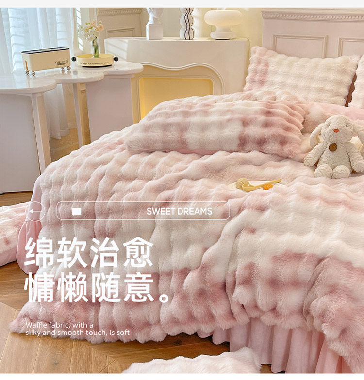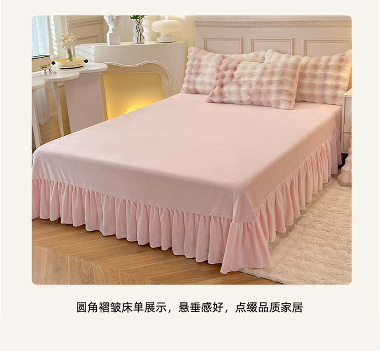 丝印良品 2024直播秋冬高克重500克床裙款泡泡四件套纯色印花泡泡-甜心粉,泡泡-甜心粉