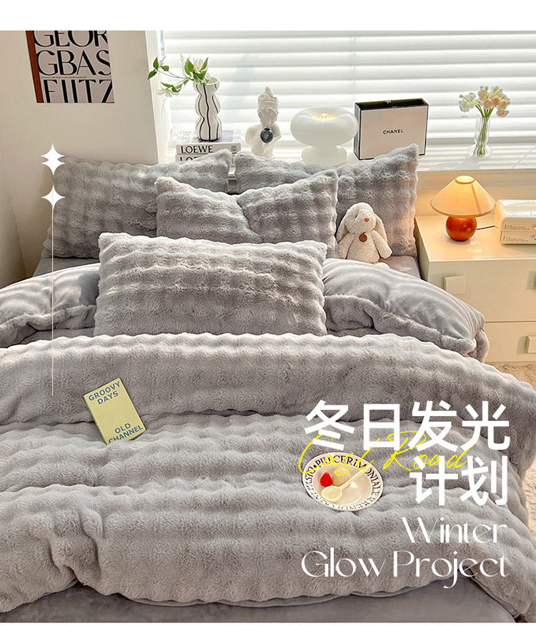 商品名称:丝印良品 2024直播秋冬高克重500克床裙款泡泡四件套纯色印花泡泡-高级灰