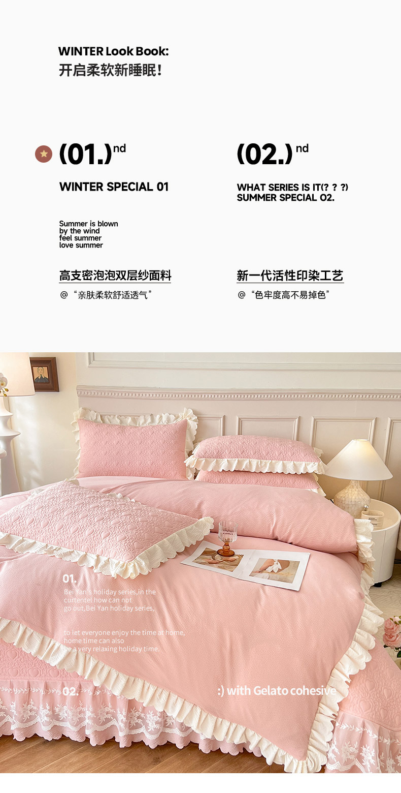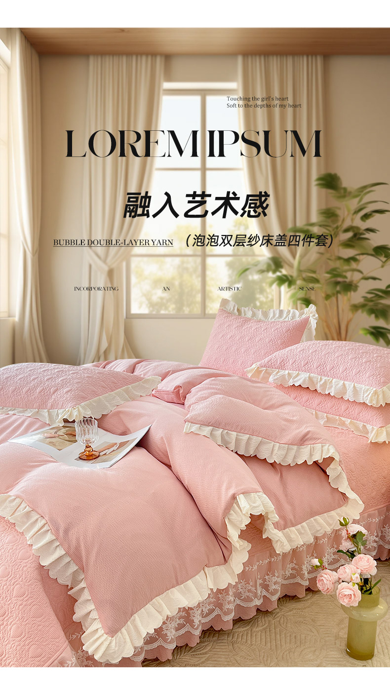 当前位置: 91家纺网 > 商品网购 > 床品套件 > 四件套 > 其它四件套 > 丝印良品 2024新款秋冬泡泡双层纱夹棉床盖四件套仙姿玉