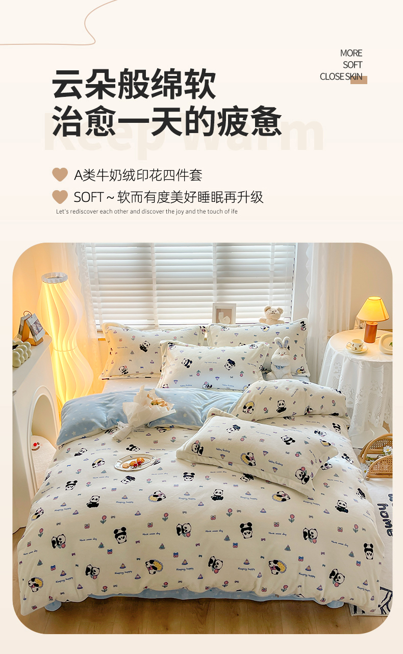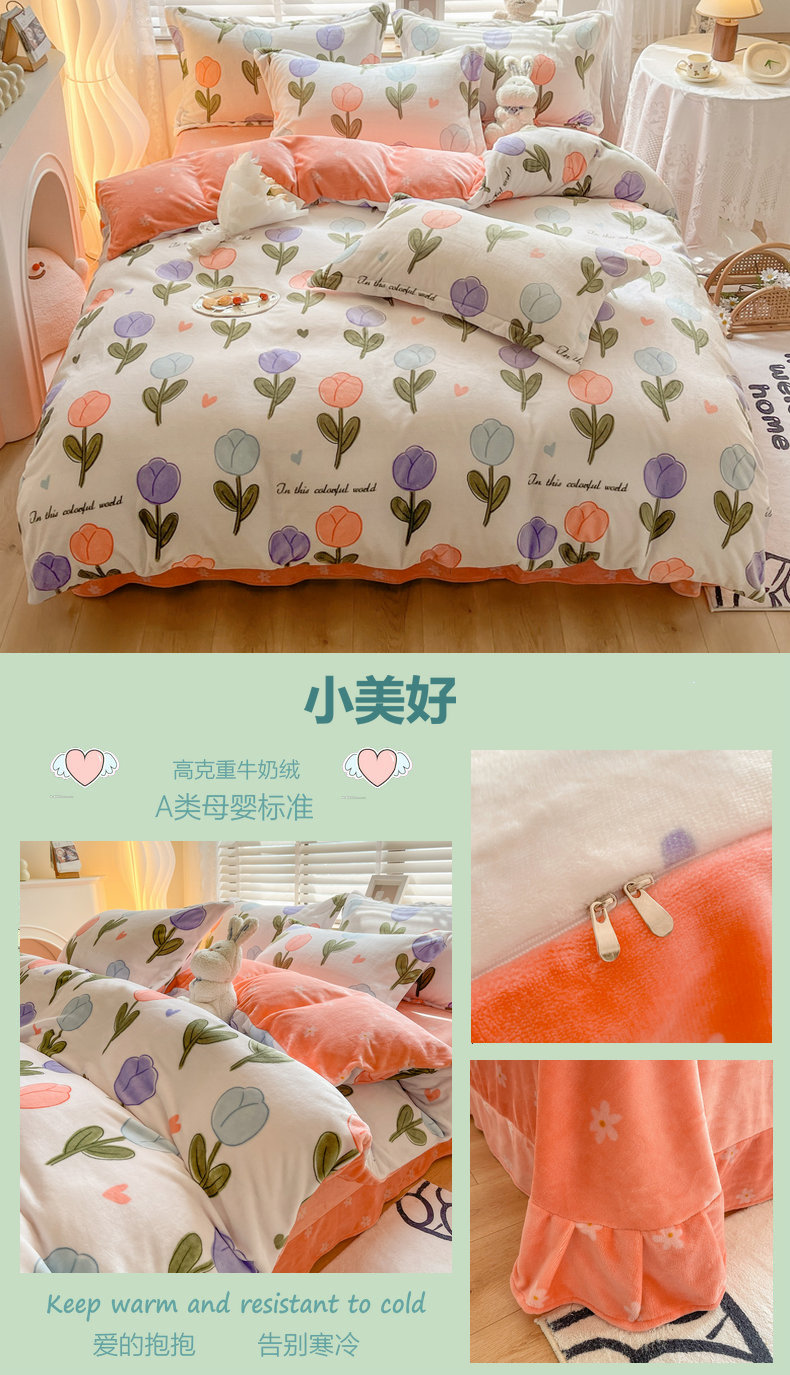 当前位置: 91家纺网 > 商品网购 > 床品套件 > 四件套 > 牛奶绒四件套 > 2024新款ins风重8.3斤高克重吊边款牛奶绒四件套 小美好