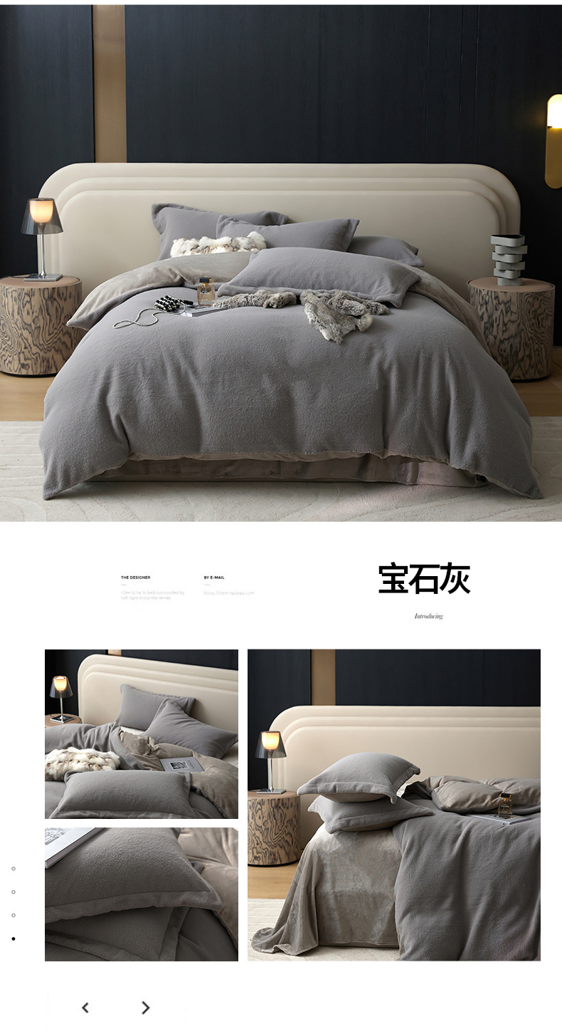 金奇达家纺 2025秋冬保暖加厚绒类四件套多莉羊绒-德尔菲 宝石灰