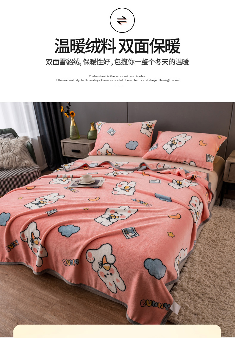 当前位置: 91家纺网 > 商品网购 > 毛毯休闲毯绒毯 > 毛毯 > 慕尚家纺 2025新款雪貂绒高克重300g毛毯家用毛毯 快乐小兔