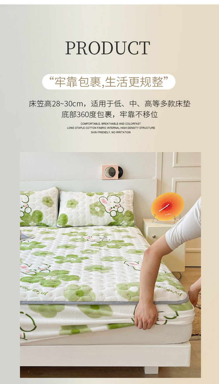 商品名称:2024秋冬A类牛奶绒加厚夹棉床笠+牛奶绒被套四件套蓓蕾兔-绿