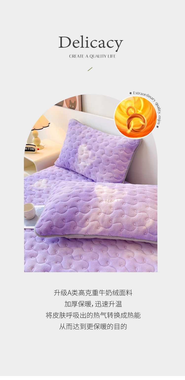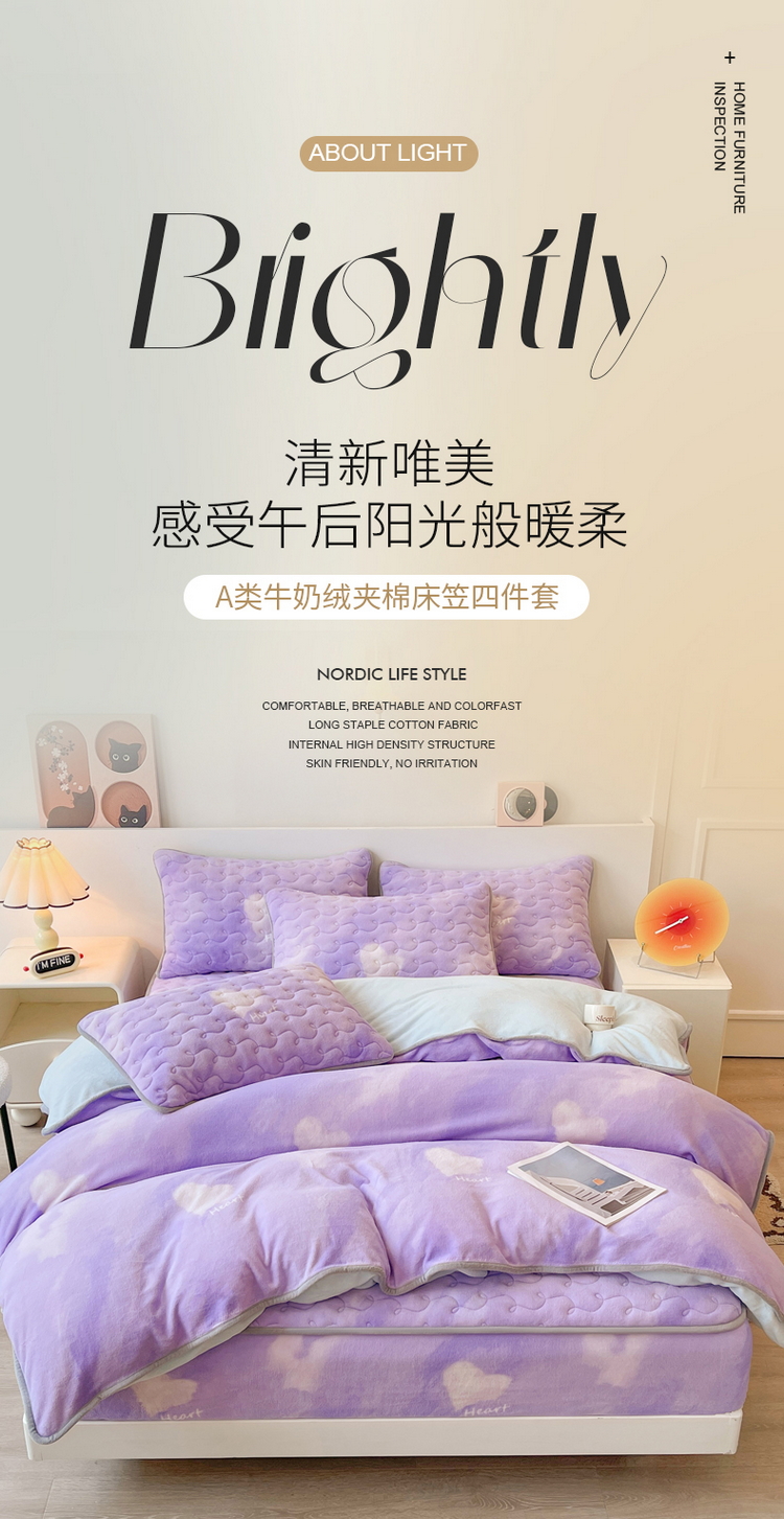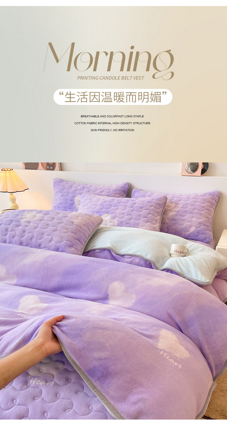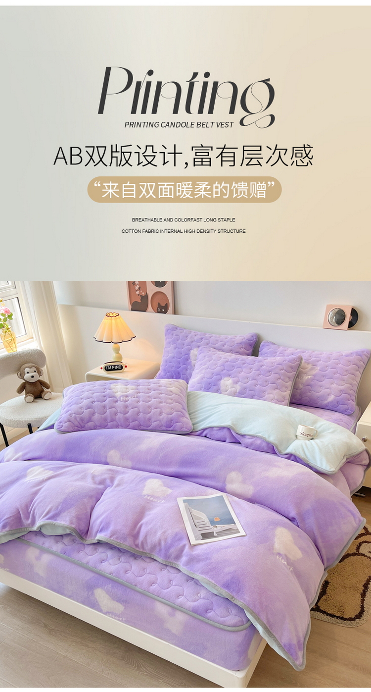 2024秋冬A类牛奶绒加厚夹棉床笠+牛奶绒被套四件套炫彩