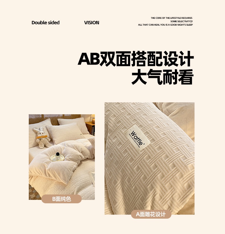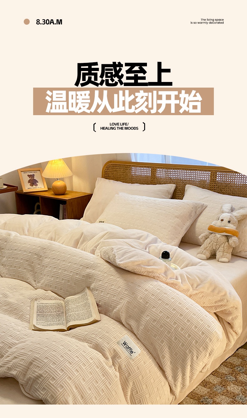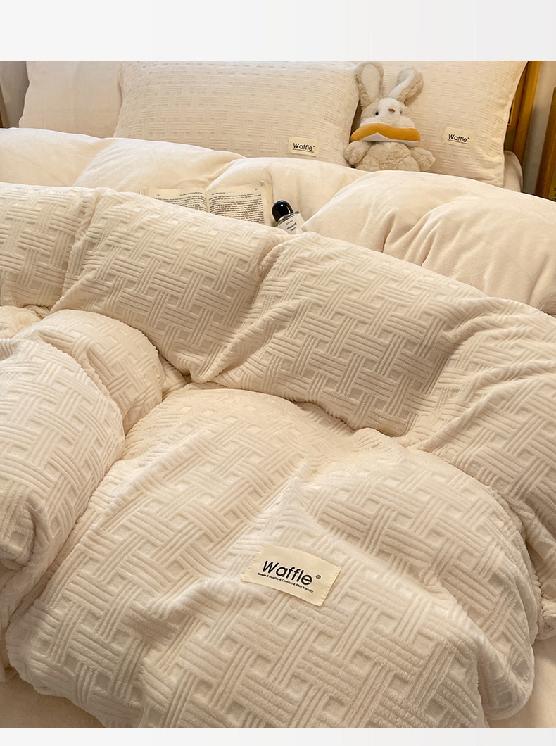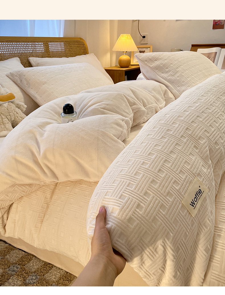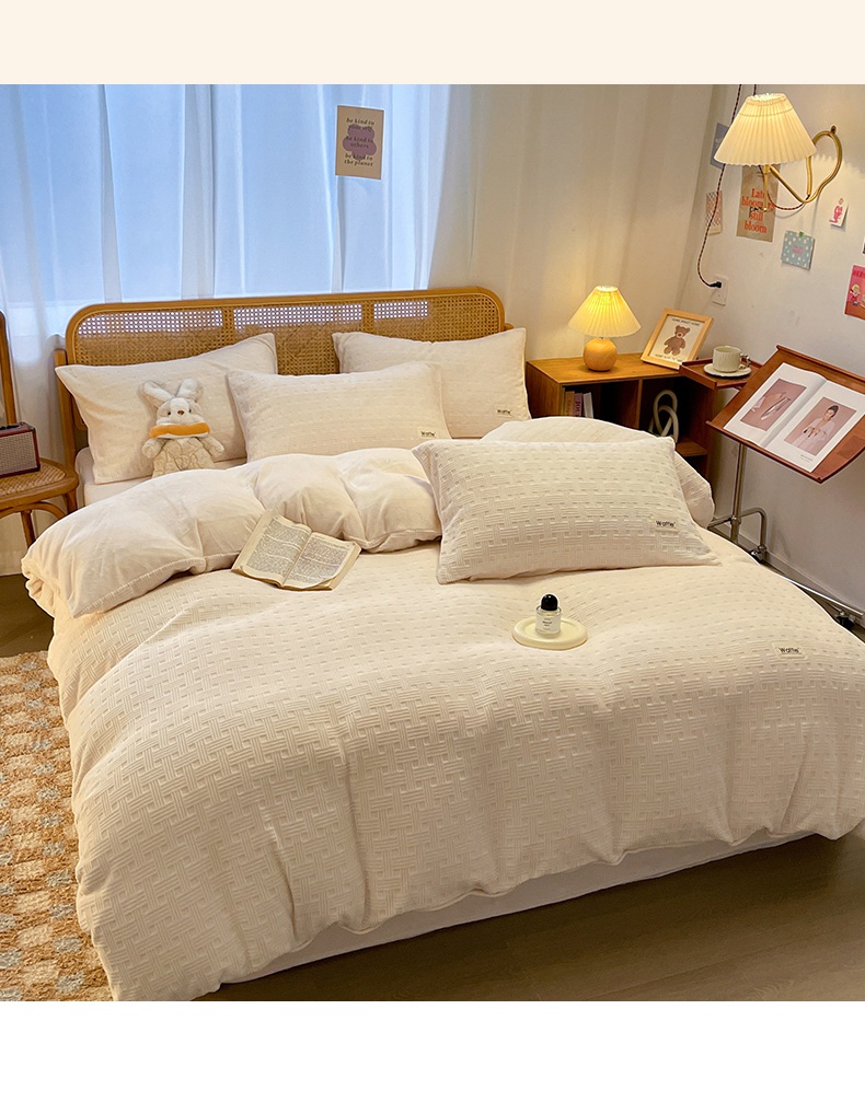 当前位置: 91家纺网 > 商品网购 > 床品套件 > 四件套 > 牛奶绒四件套 > 莱茵家居 2024新款A类高克重雕花牛奶绒四件套-糖果格 糖果格-米白
