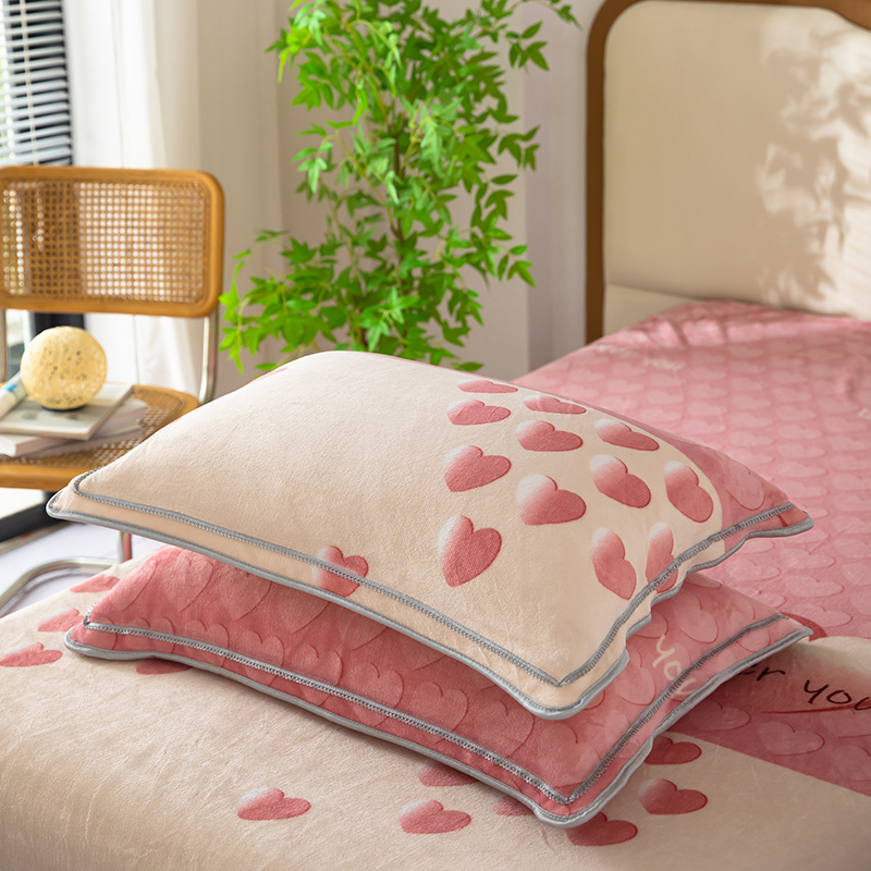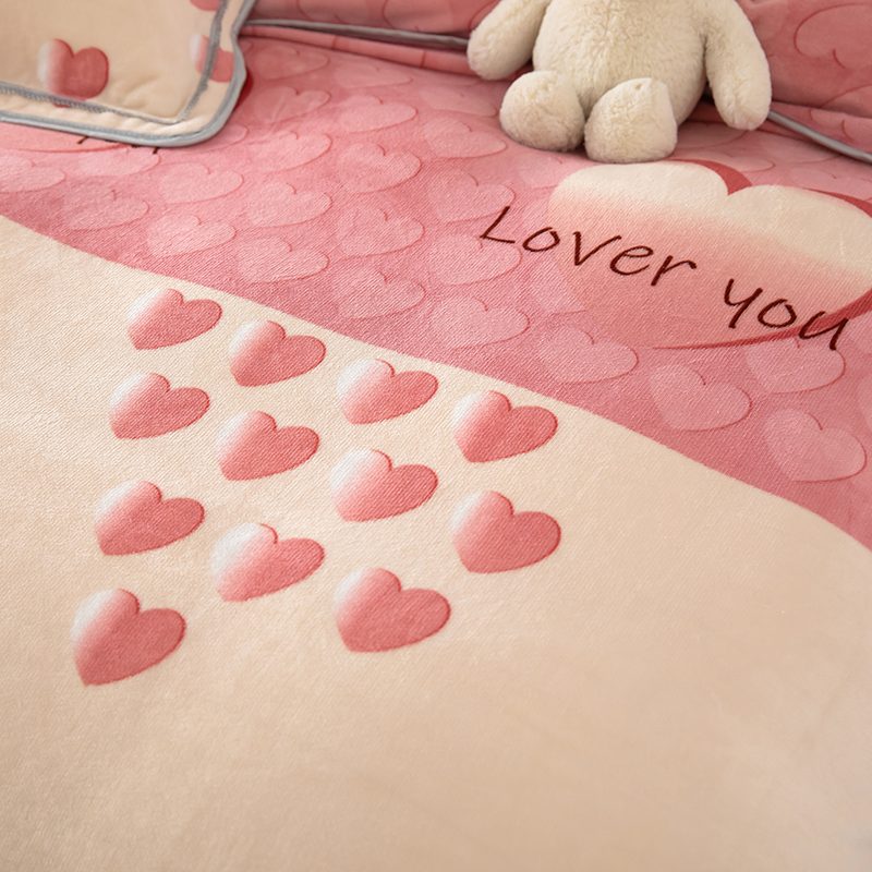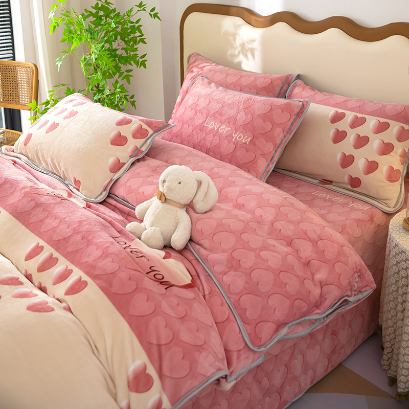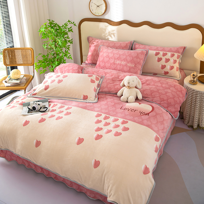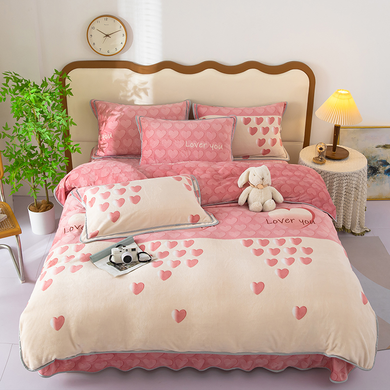 雨萝家纺 2024新款亲肤舒适牛奶绒四件套 心有灵犀