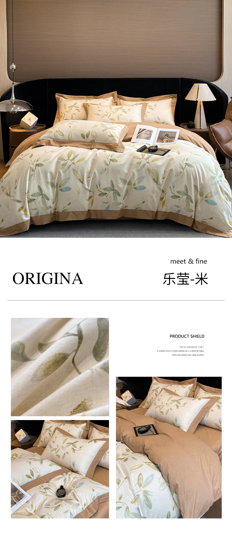 商品名称:慕晨 2024新款A类全棉贡缎磨毛数码印花宽边轻奢风中高端四件套直播爆款 乐莹-米