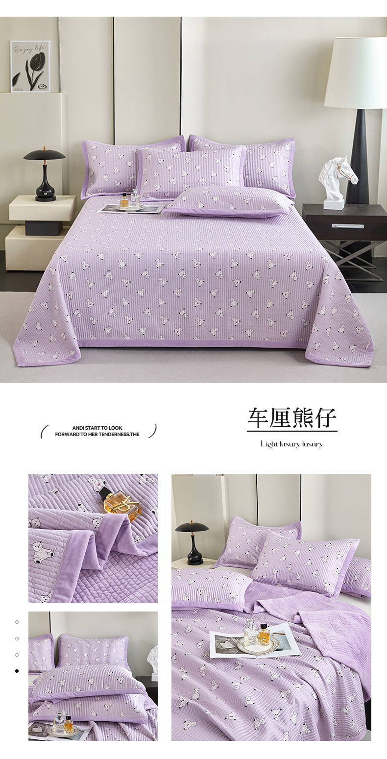莎果家纺 2025秋冬一面天丝一面绒高温砂洗床盖三件套 车厘熊仔