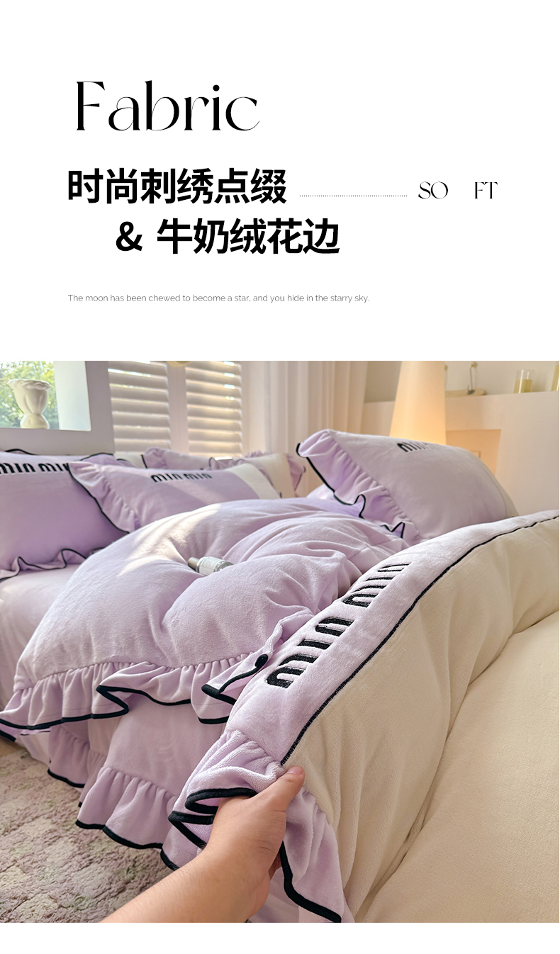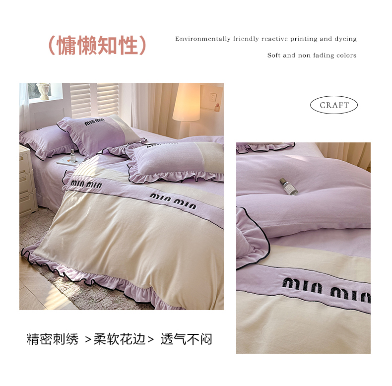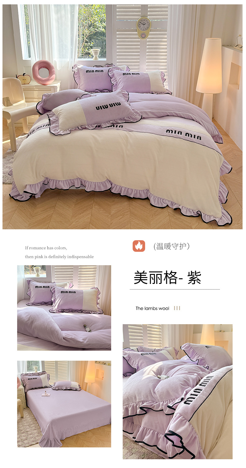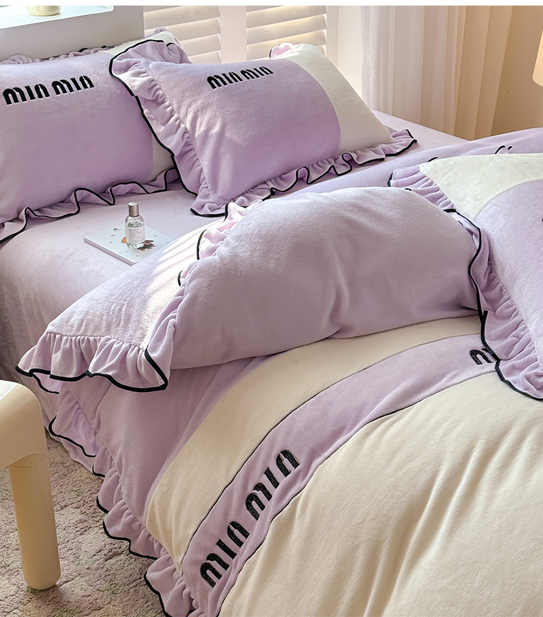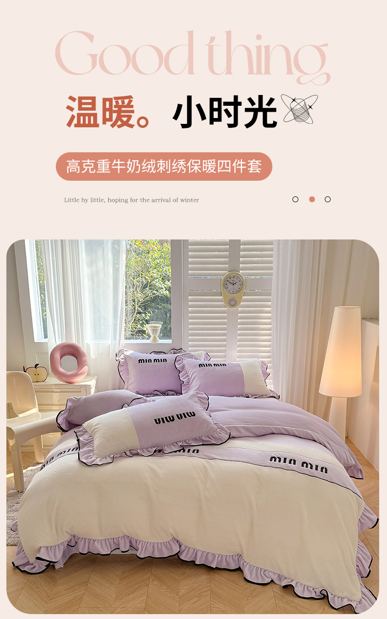 凯美家居 2024新款牛奶绒刺绣花边四件套-美丽格 美丽格-紫
