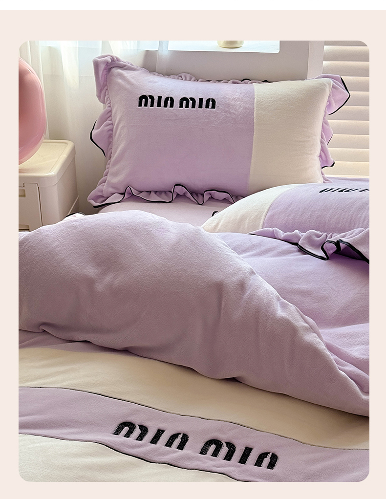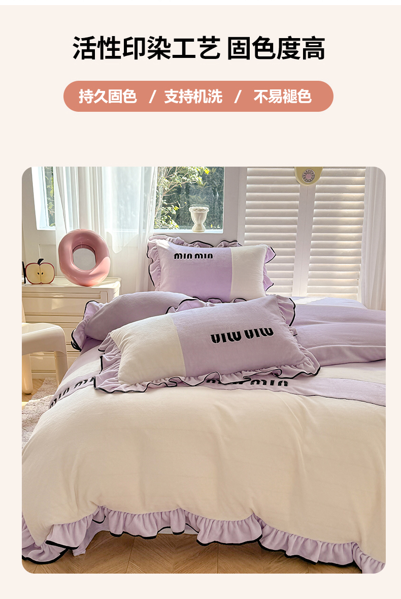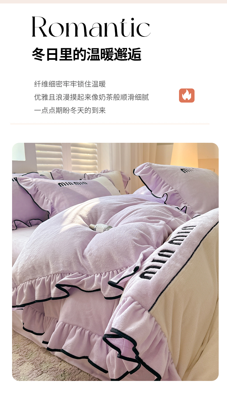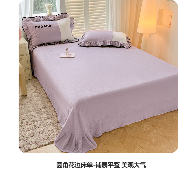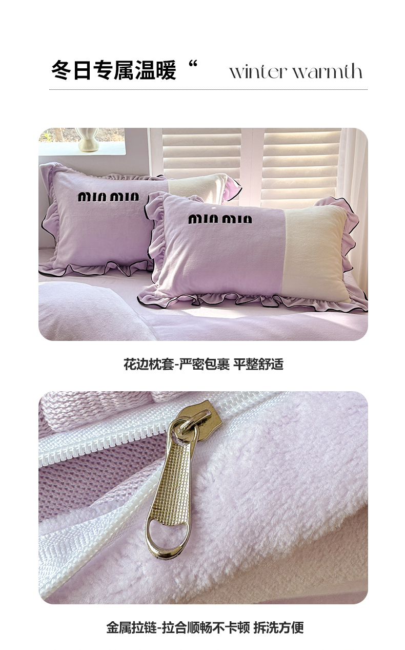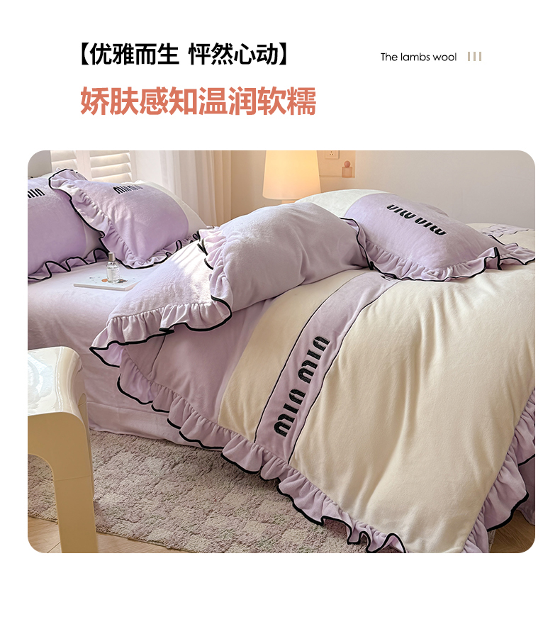 凯美家居 2024新款牛奶绒刺绣花边四件套-美丽格 美丽格-紫