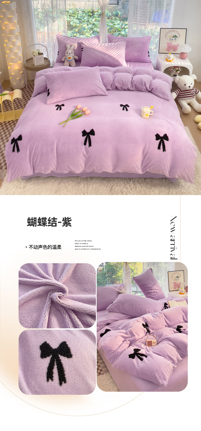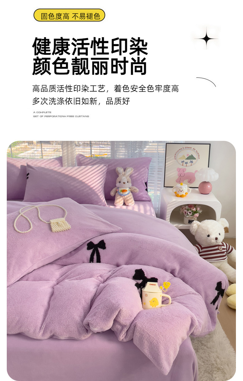 商品名称:蝶帕家纺 2024新款阳离子提花舒棉绒四件套 蝴蝶结-紫