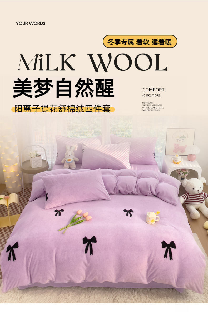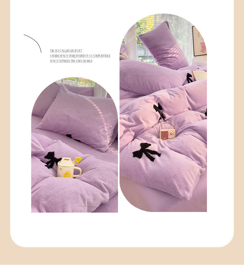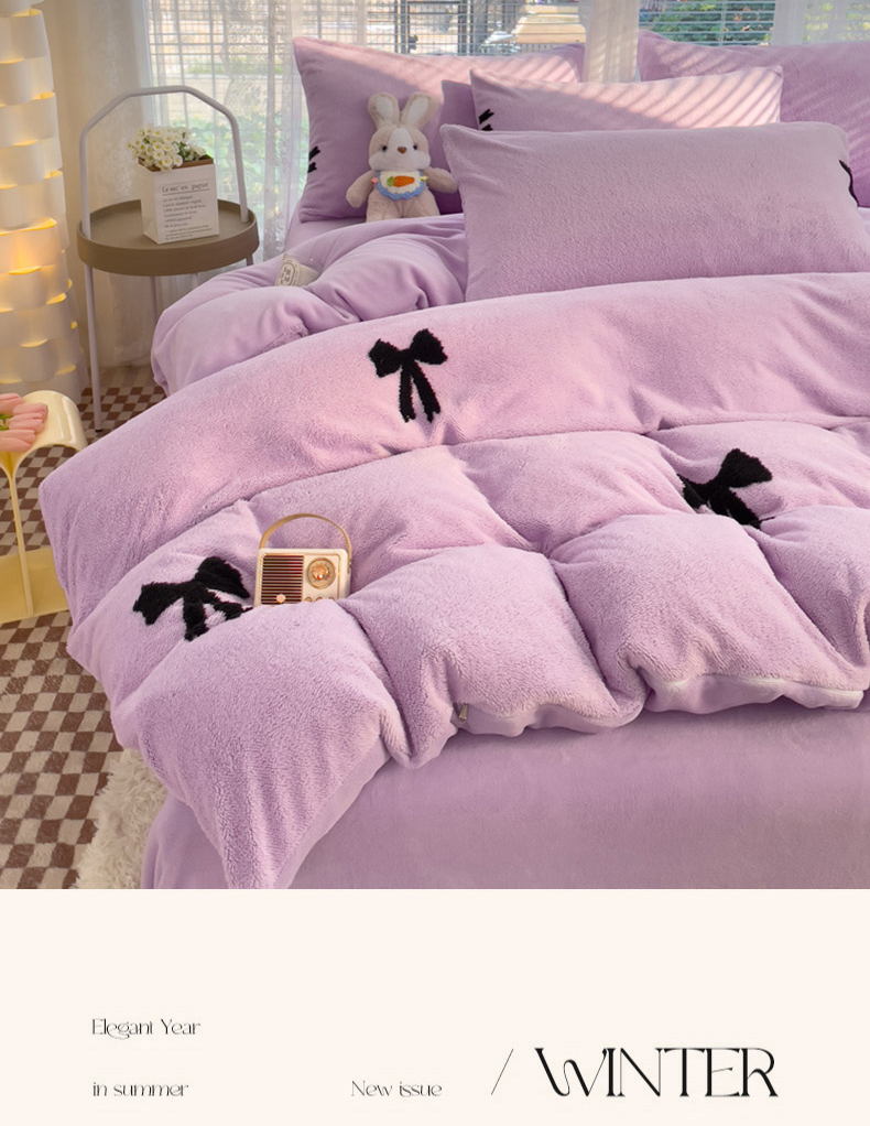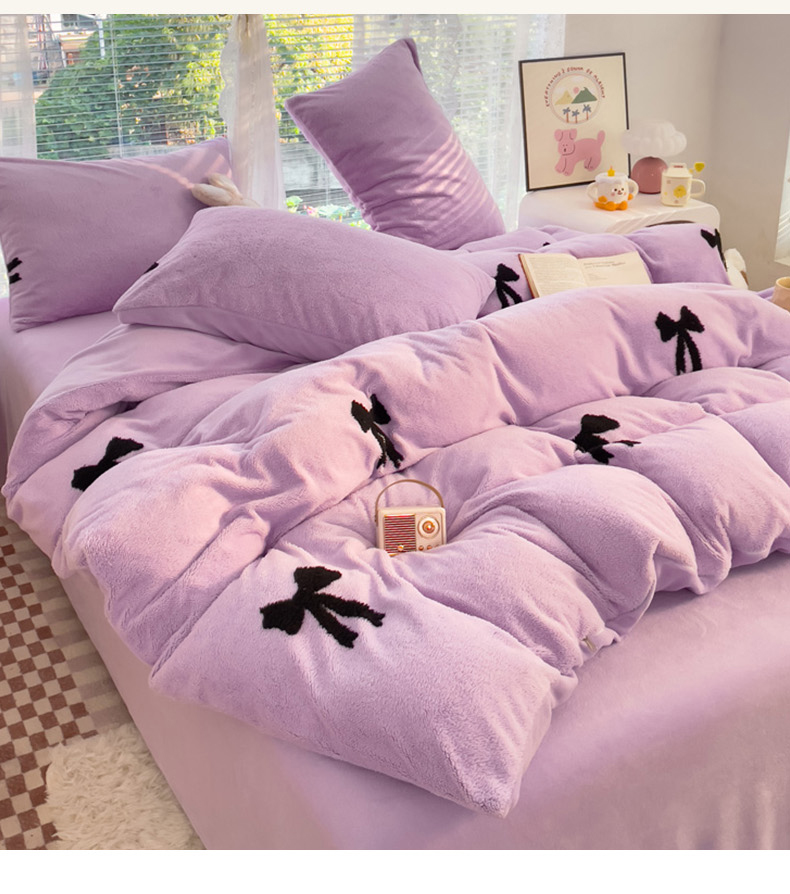 蝶帕家纺 2024新款阳离子提花舒棉绒四件套 蝴蝶结-紫
