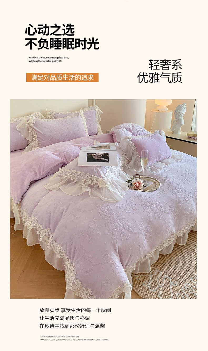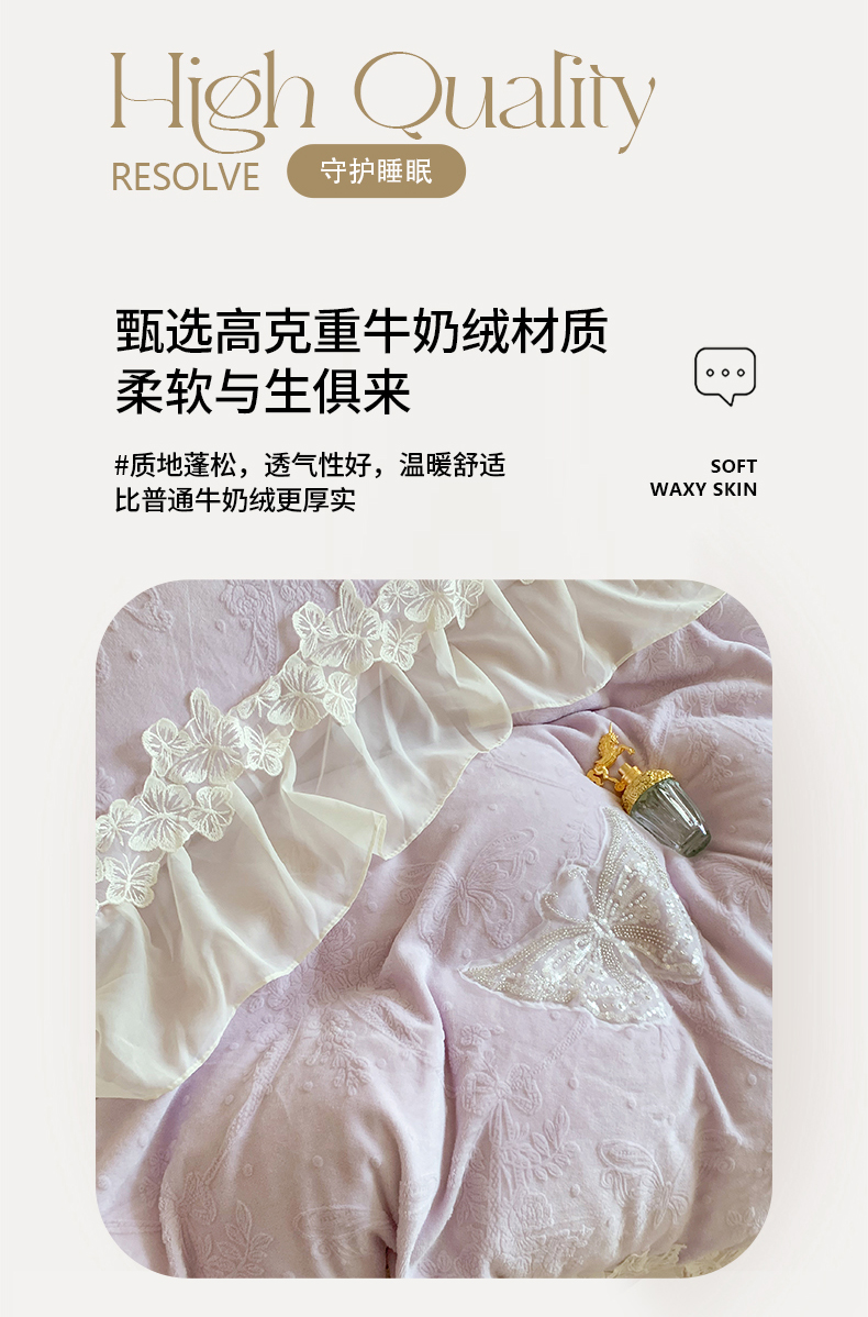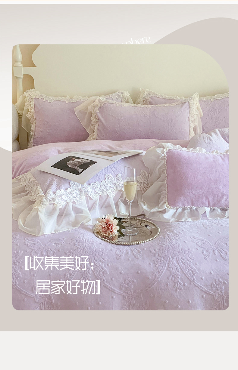 (总)吾欢心 2025新款法式蕾丝款加厚皮草绒四件套,艾莉薇,蝴蝶结,美拉德,梦幻蝶舞,莫奈香颂,索菲亚