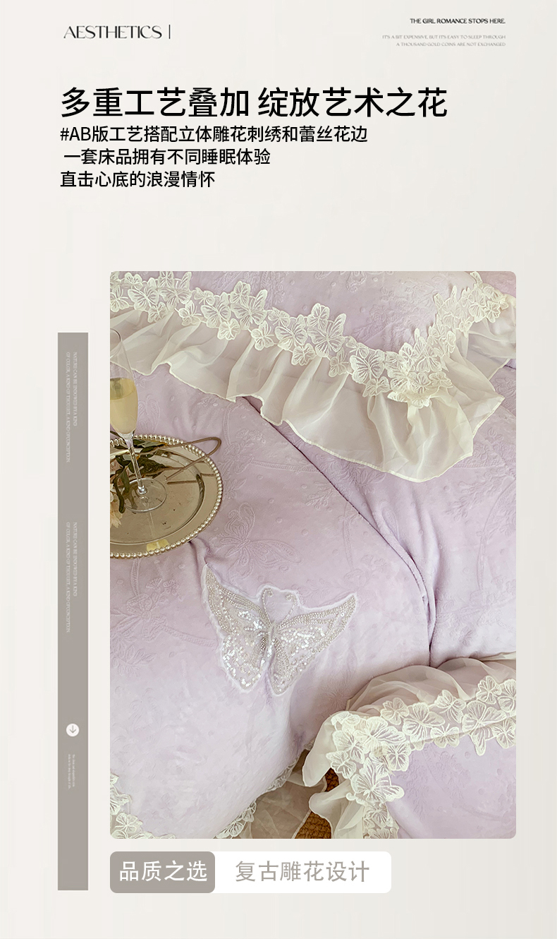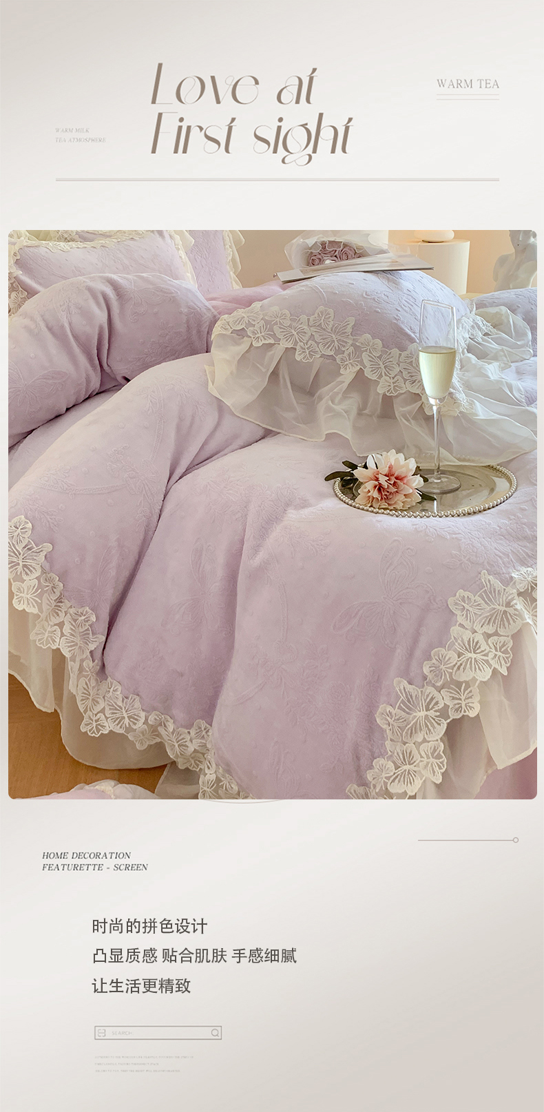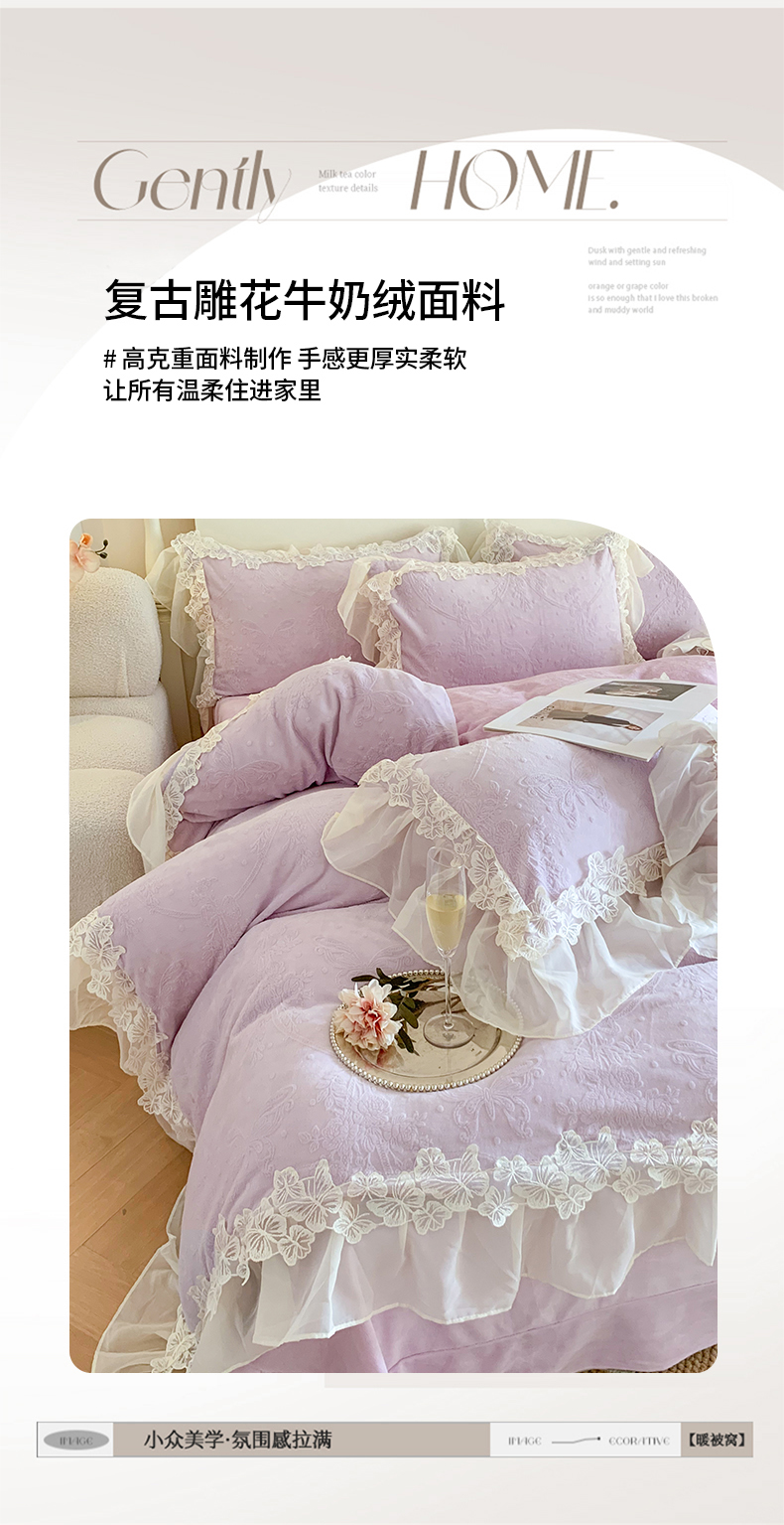 (总)吾欢心 2025新款法式蕾丝款加厚皮草绒四件套,艾莉薇,蝴蝶结,美拉德,梦幻蝶舞,莫奈香颂,索菲亚