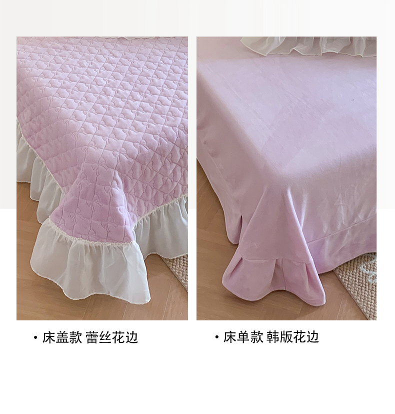 (总)吾欢心 2025新款公主风雪纺边四季通用夹棉床盖,床盖白,床盖粉,床盖黄,床盖咖,床盖绿,床盖抹茶绿,床盖紫