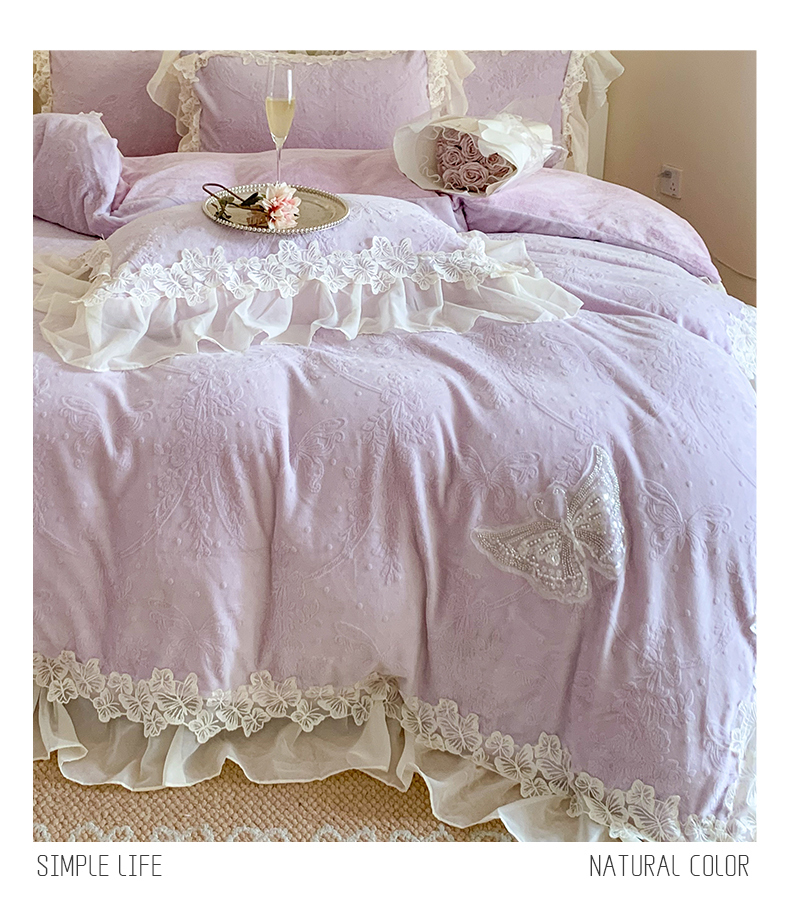 (总)吾欢心 2025新款糯小棉立体蝴蝶花边四件套-蝶恋花系列,蝶恋花白,蝶恋花粉,蝶恋花黄,蝶恋花咖,蝶恋花蓝,蝶恋花绿,蝶恋花紫