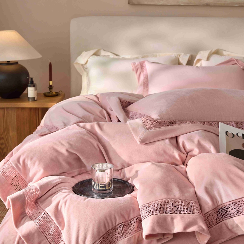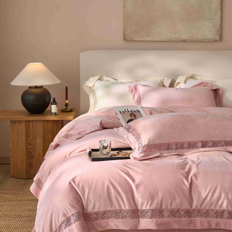 商品名称:榻尚家居 2024新款秋冬婴肤绒四件套-柔梦系列 柔梦-裸粉