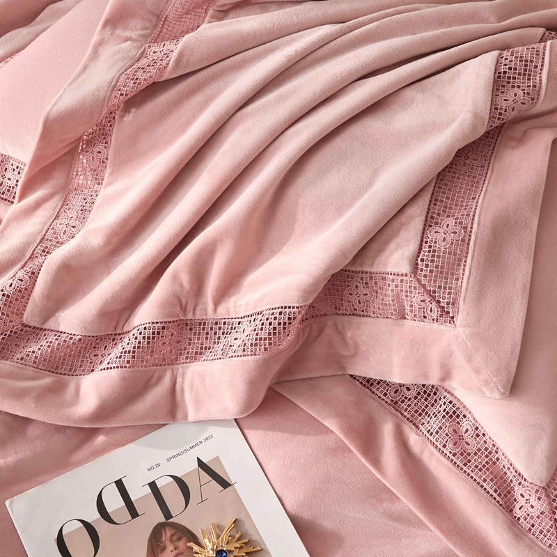 榻尚2023新款进口蕾丝缕空260克公主绒加厚牛奶绒秋冬款四件套,低调的华丽-粉玉,低调的华丽-海雾蓝,低调的华丽-奶茶棕,低调的华丽-象牙白