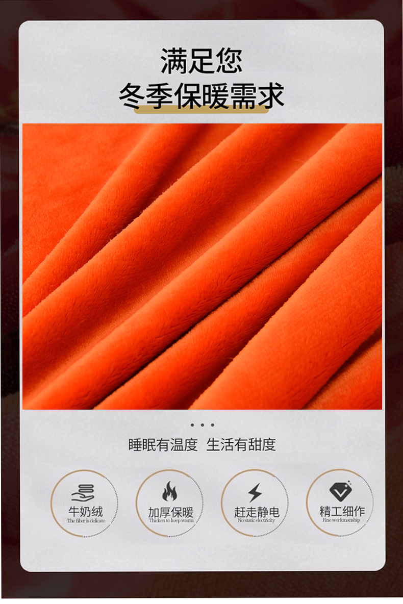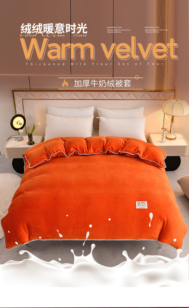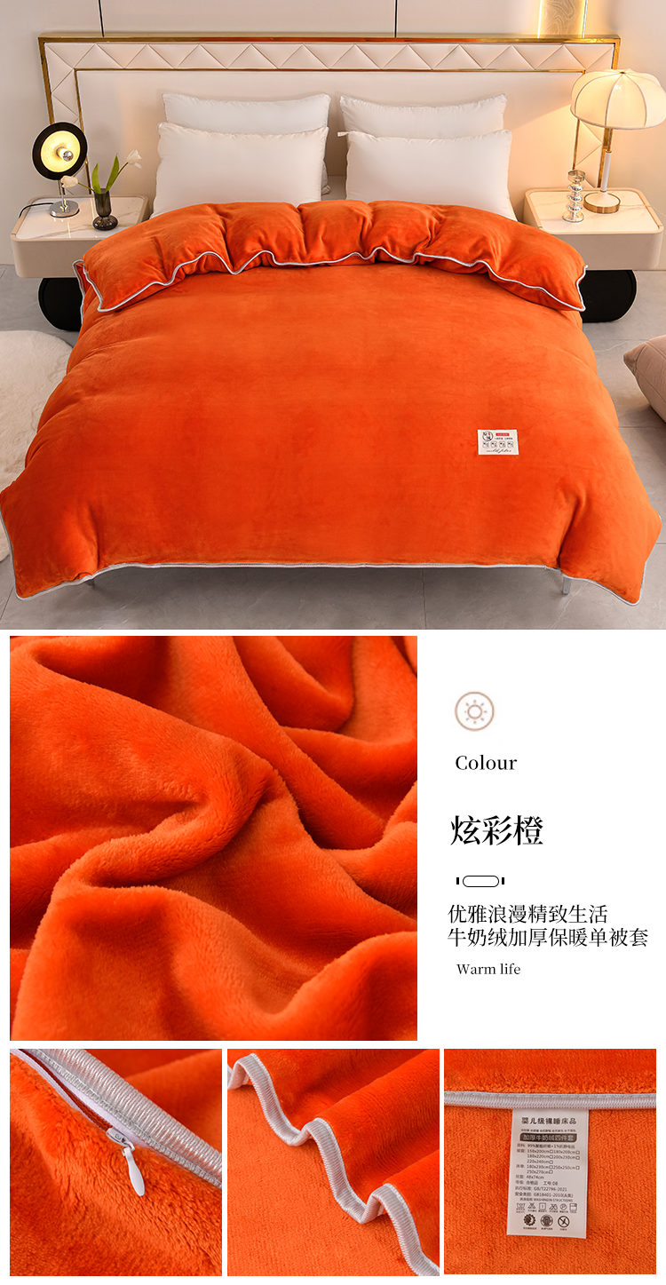 商品名称:绒品荟家纺 2025新款加厚牛奶绒单被套金貂绒法莱绒冬季法兰绒高克重被罩 炫彩橙