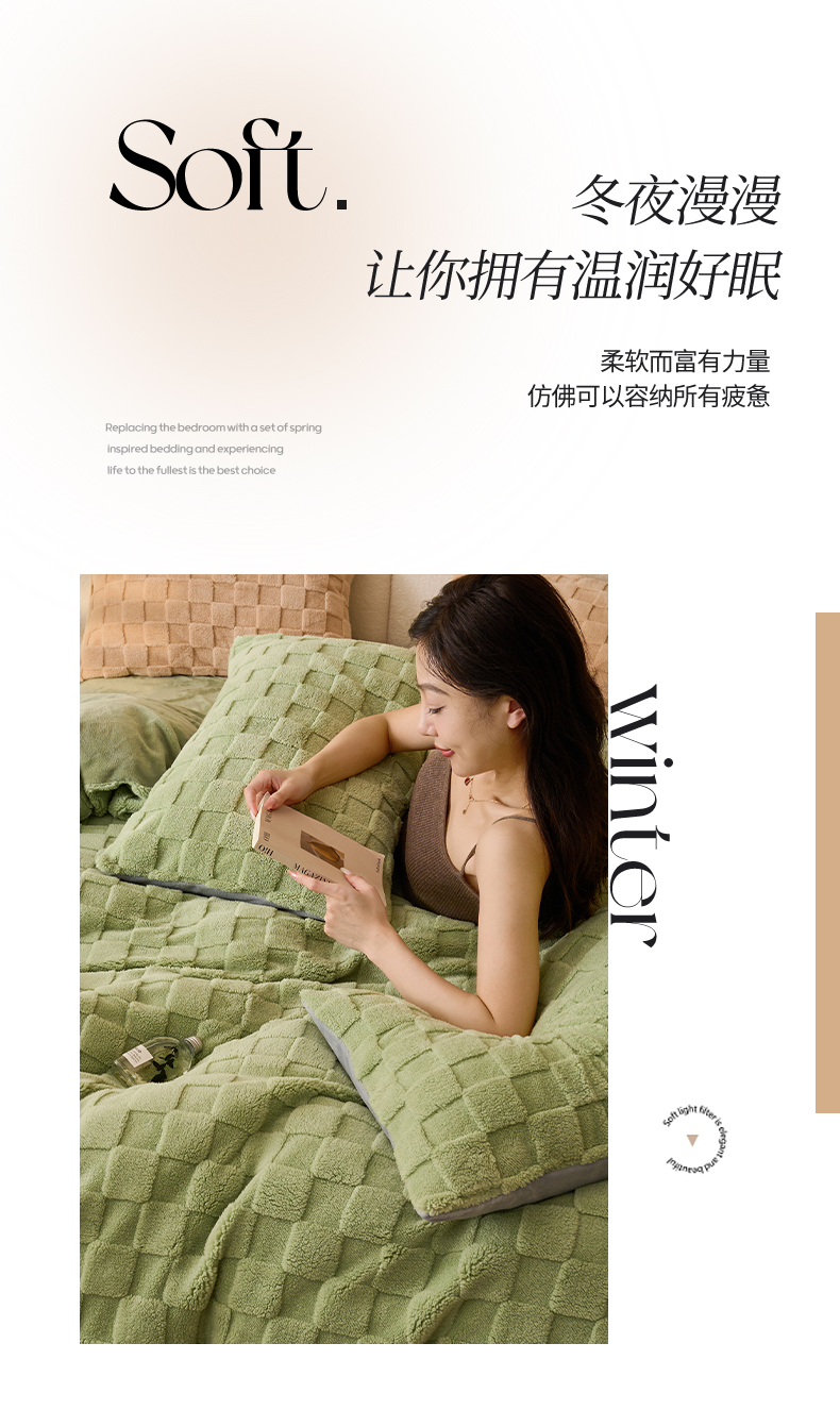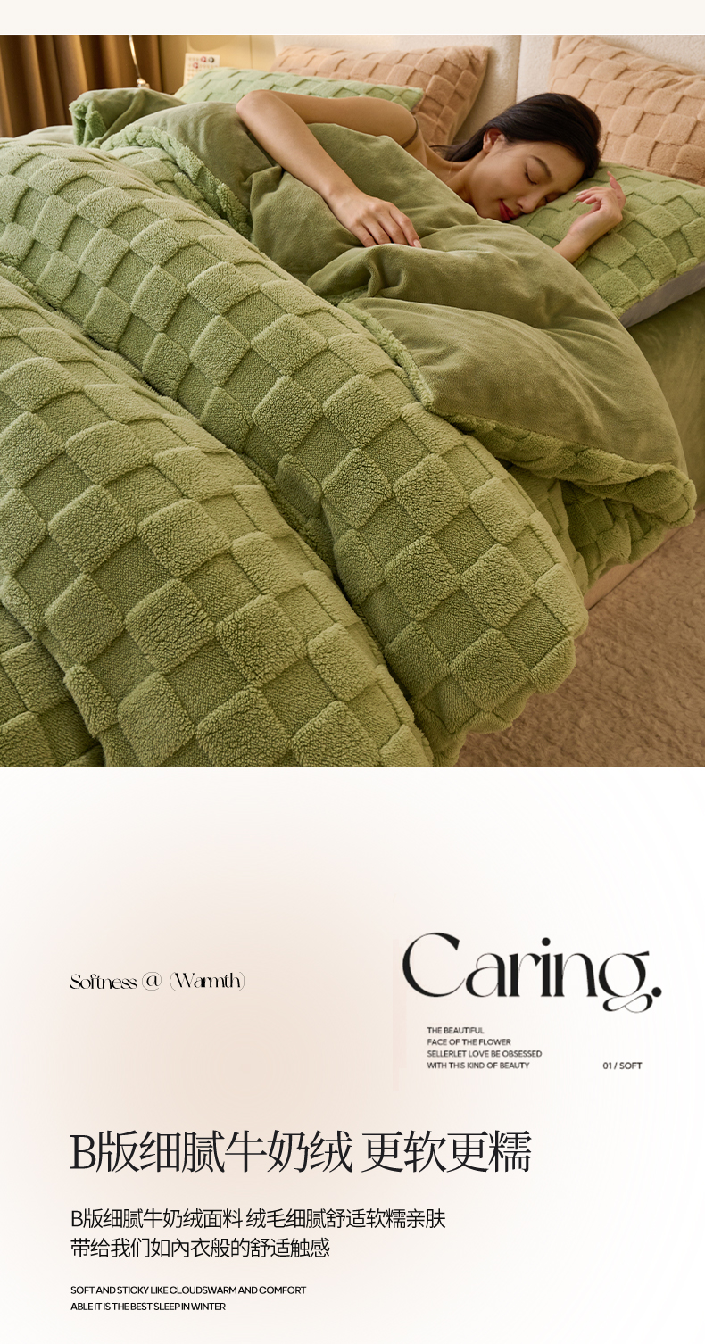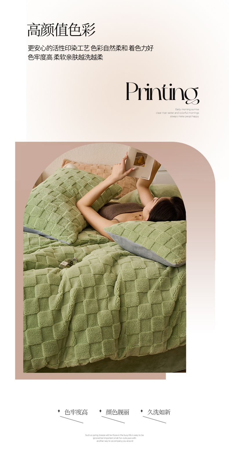 • 91家纺网 家纺一手货源 找家纺 2024新款塔芙绒牛奶绒可拆洗冬被-初暖系列 初暖-果绿