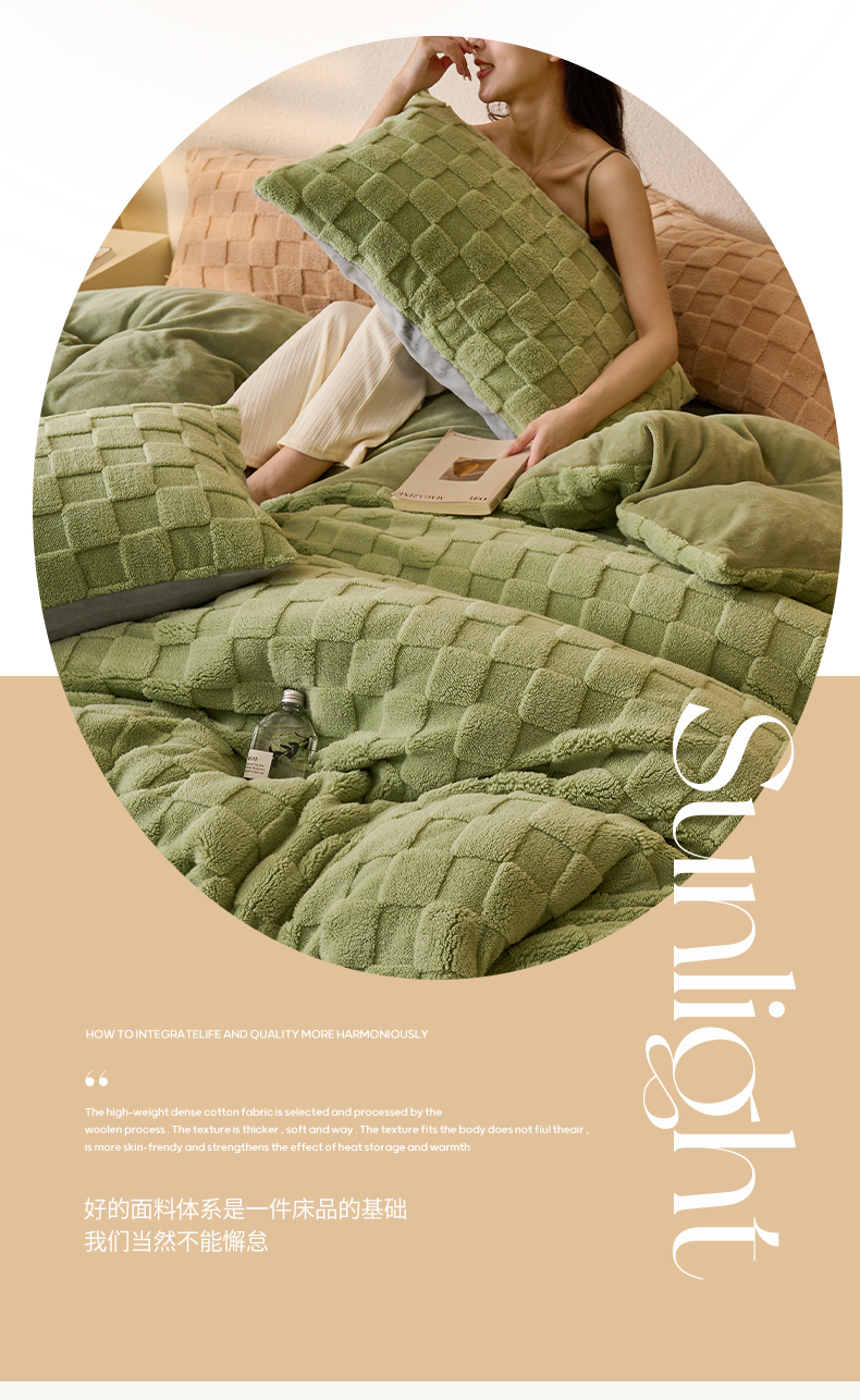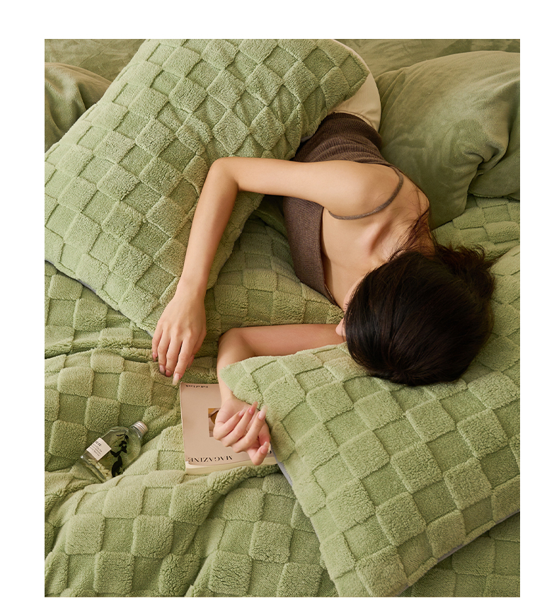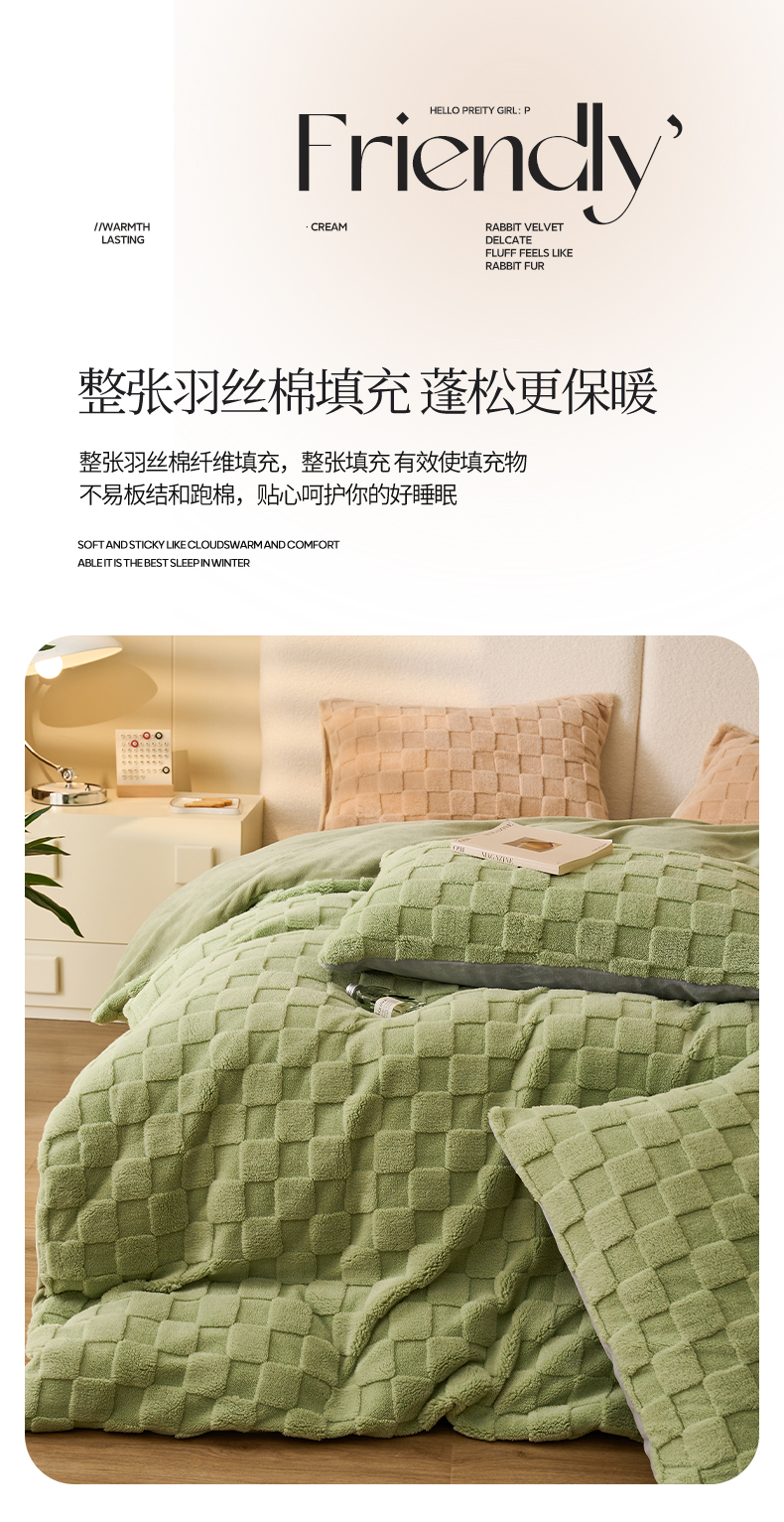 • 91家纺网 家纺一手货源 找家纺 2024新款塔芙绒牛奶绒可拆洗冬被-初暖系列 初暖-果绿