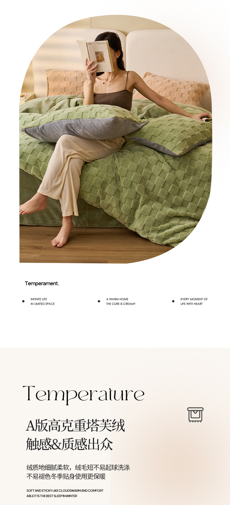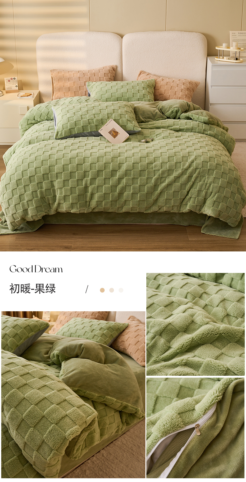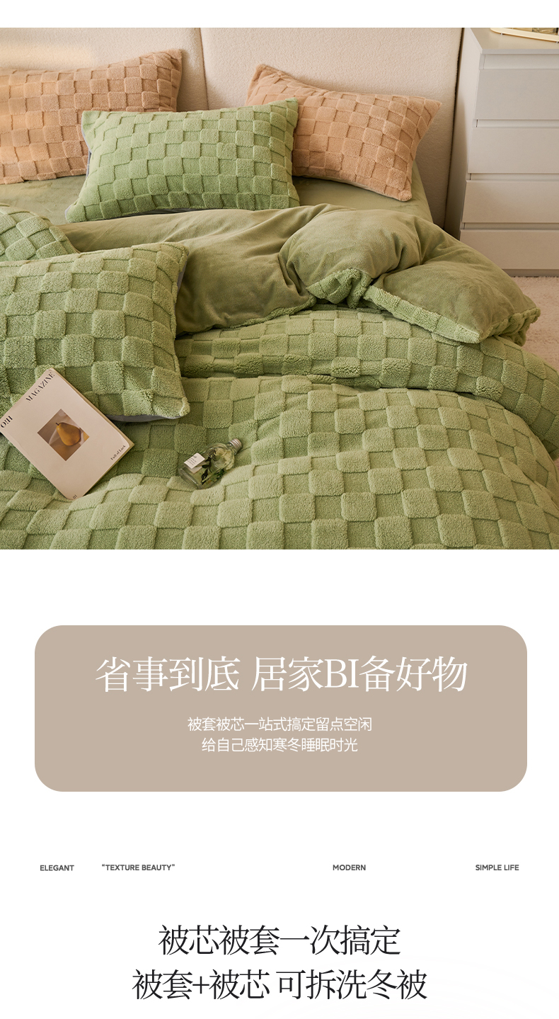2024新款塔芙绒牛奶绒可拆洗冬被-初暖系列 初暖-果绿