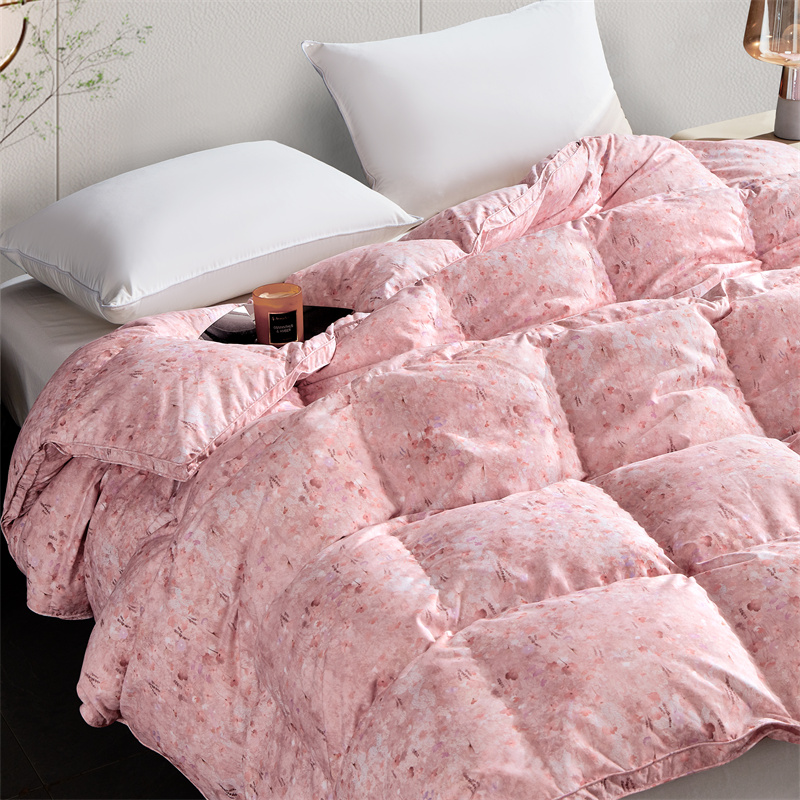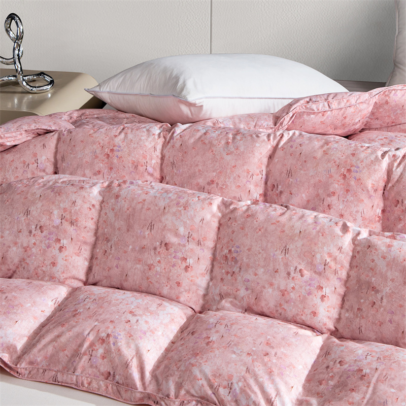 • 91家纺网 家纺一手货源 找家纺 华盛羽绒被壳 2024新款羽绒被工厂店糯棉印花羽毛被大牌款 小碎花嫩粉色