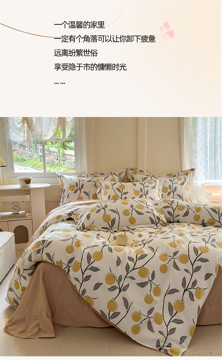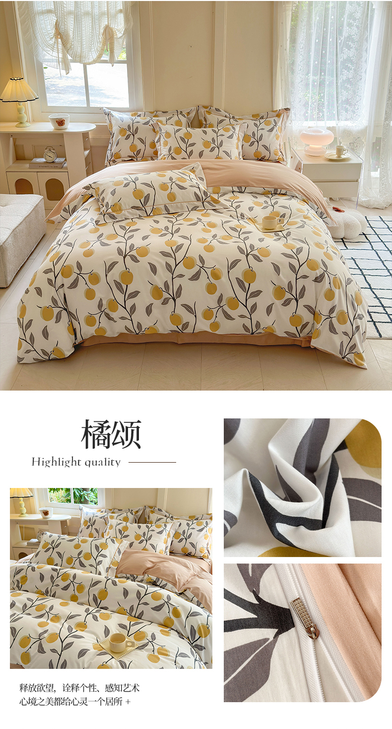 当前位置: 91家纺网 > 商品网购 > 床品套件 > 四件套 > 全棉普通四件套 > 7V 2024新款A类全棉四件套 橘颂