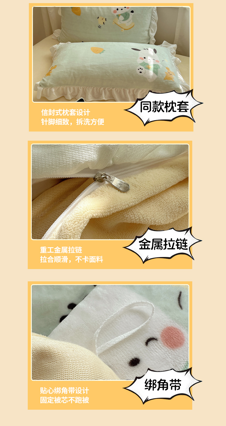 三朵家纺 2024新款高克重加厚保暖牛奶绒三丽鸥花边四件套 花边-运动帕恰