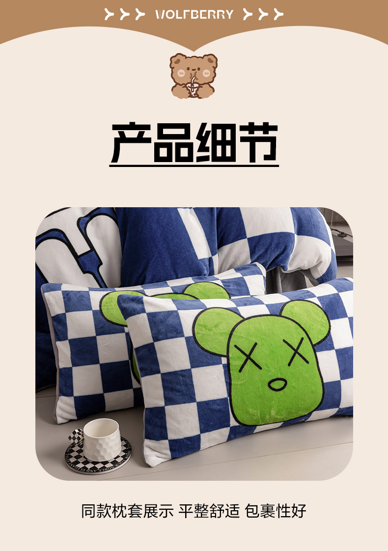 (总)色鬼布艺高端家居主号 2025秋冬新款网红款水洗棉四季款四件套,豹纹熊-粉,豹纹熊-绿,彩虹兔,格子熊,公仔蓝,梦幻粉,梦幻蓝,棋盘格公仔,太阳花粉,天使熊-粉,天使熊-咖,小熊头,熊头白,熊头橙,熊头咖,熊仔白