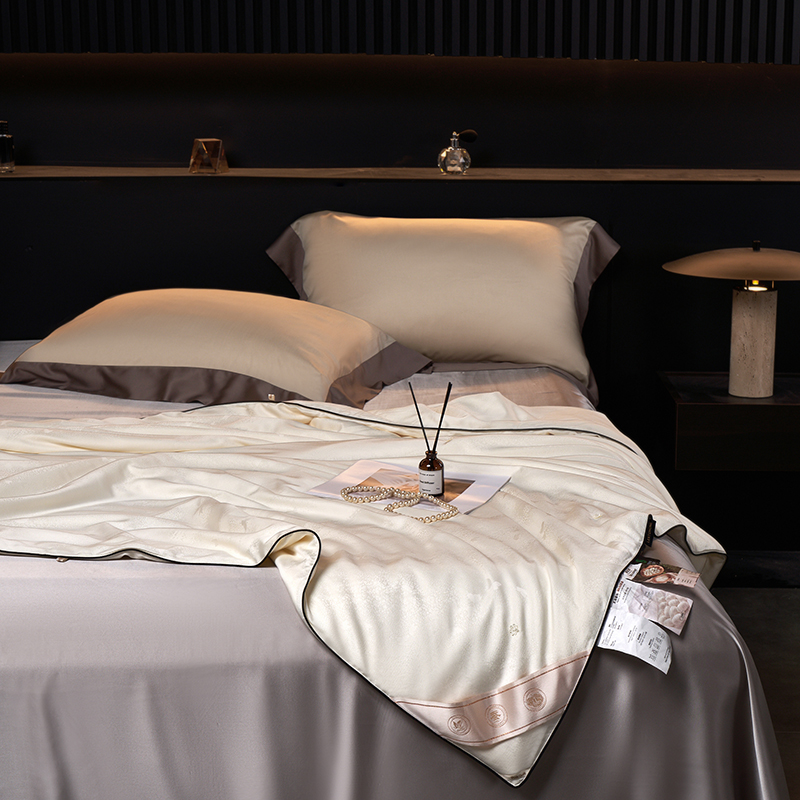 (总)朴罗 ( 原岚图) 2024新款金蚕乳丝大宽边拼角单夏被,淡紫,粉,灰棕,金,蓝,绿